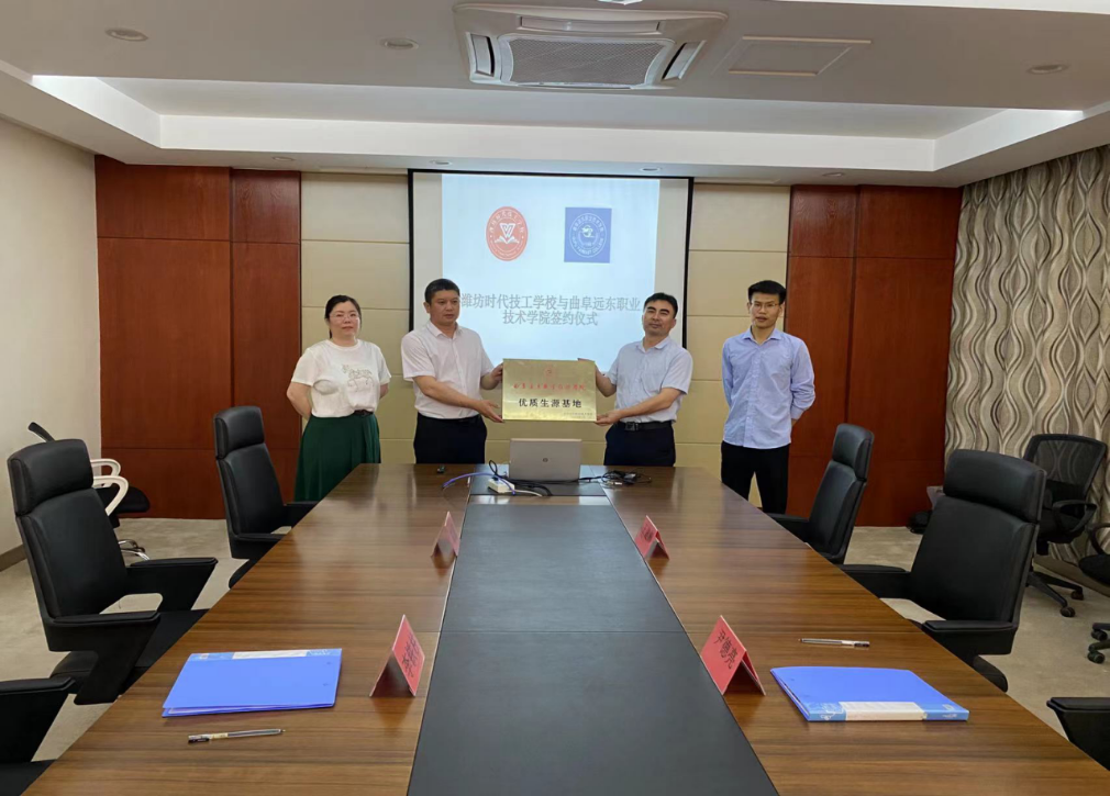 尹德亮表示,潍坊时代技工学校作为一所中职阶段的学校,每年给高职院校输送众多优质生源,我院作为一所建校25年的山东最早的高职院校之一,将继续深入加强与潍坊时代技工学校的合作,扩大合作项目,为学生进入曲阜远东职业技术学院继续深造提供平台和支持,为国家培养更多的优秀实用型技能型高级人才。随后,尹德亮代表我院授予潍坊时代技工学校“优质生源基地”牌匾。