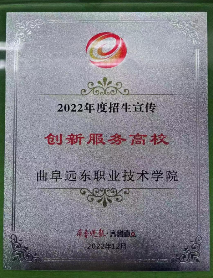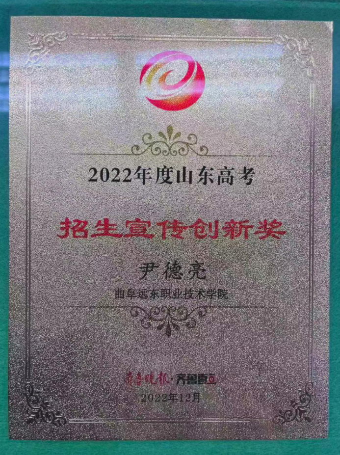 齐鲁晚报·齐鲁壹点在各高校2022年融媒传播论坛评选工作中,通过对招生政策信息发布、用户互动、高招咨询会参会、就业竞争力、用户关注度和满意度调查等方面的全面分析,评选出2022年度山东高校招生融媒传播影响力榜单,我院喜获“2022年度创新服务高校”称号,我院党委委员、院长助理尹德亮荣获2022年度山东高考“招生宣传创新奖”奖项。
