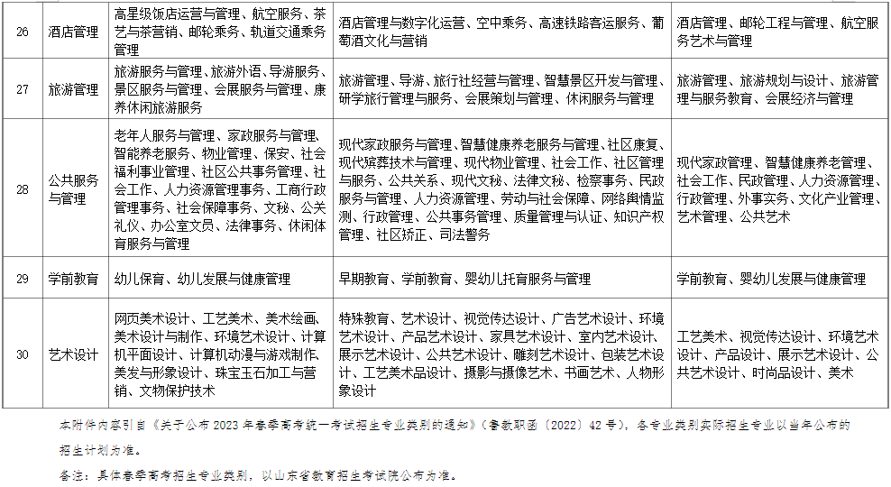 山东省2024年春季高考统一考试招生专业类别及涵盖专业 范围举例
