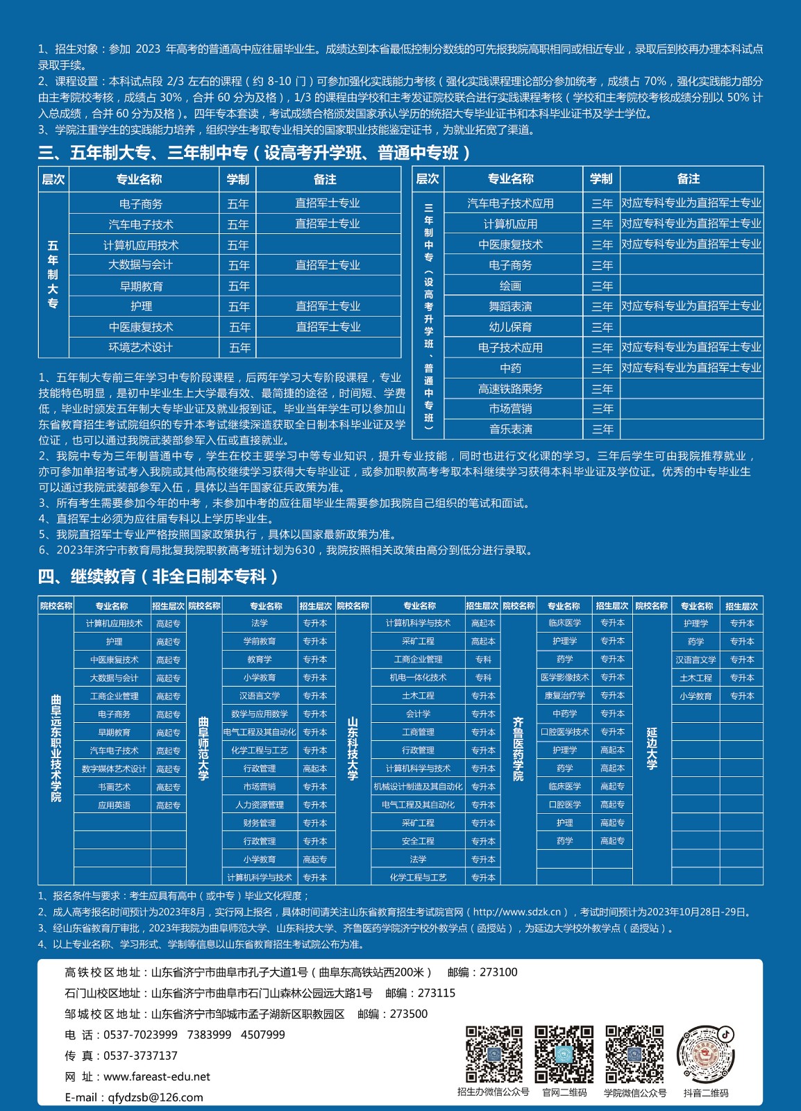 曲阜远东职业技术学院2023年三年制大专招生简章