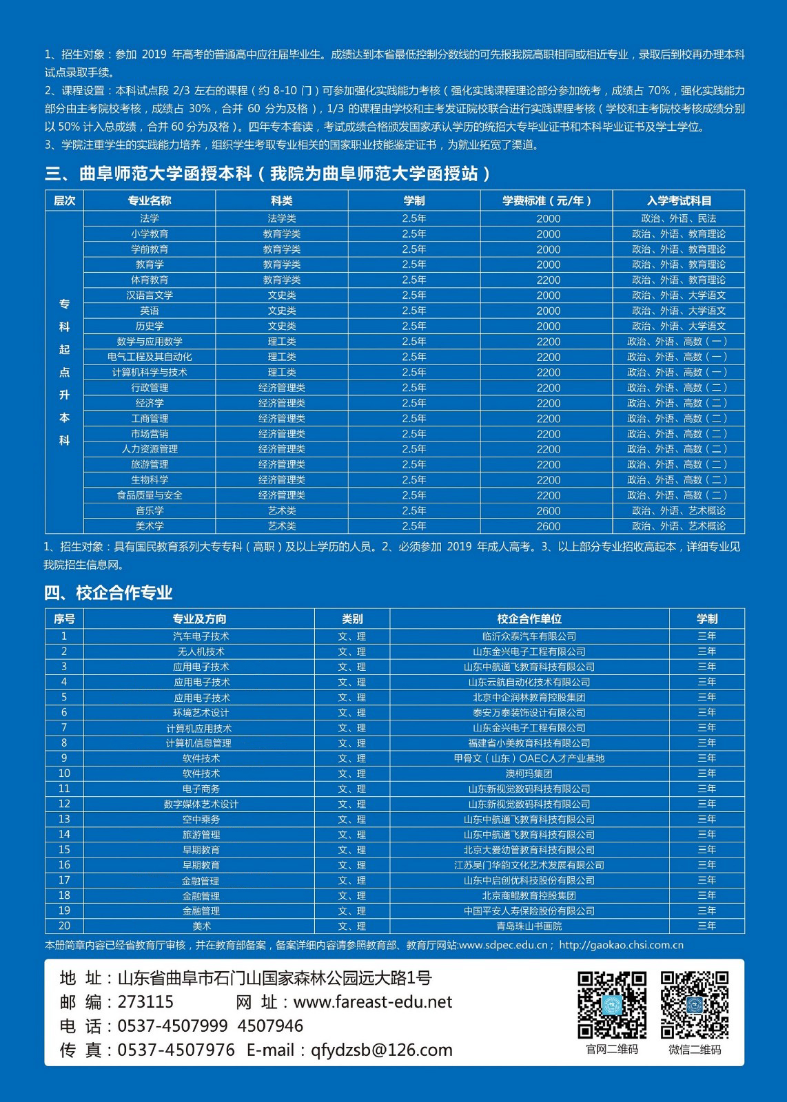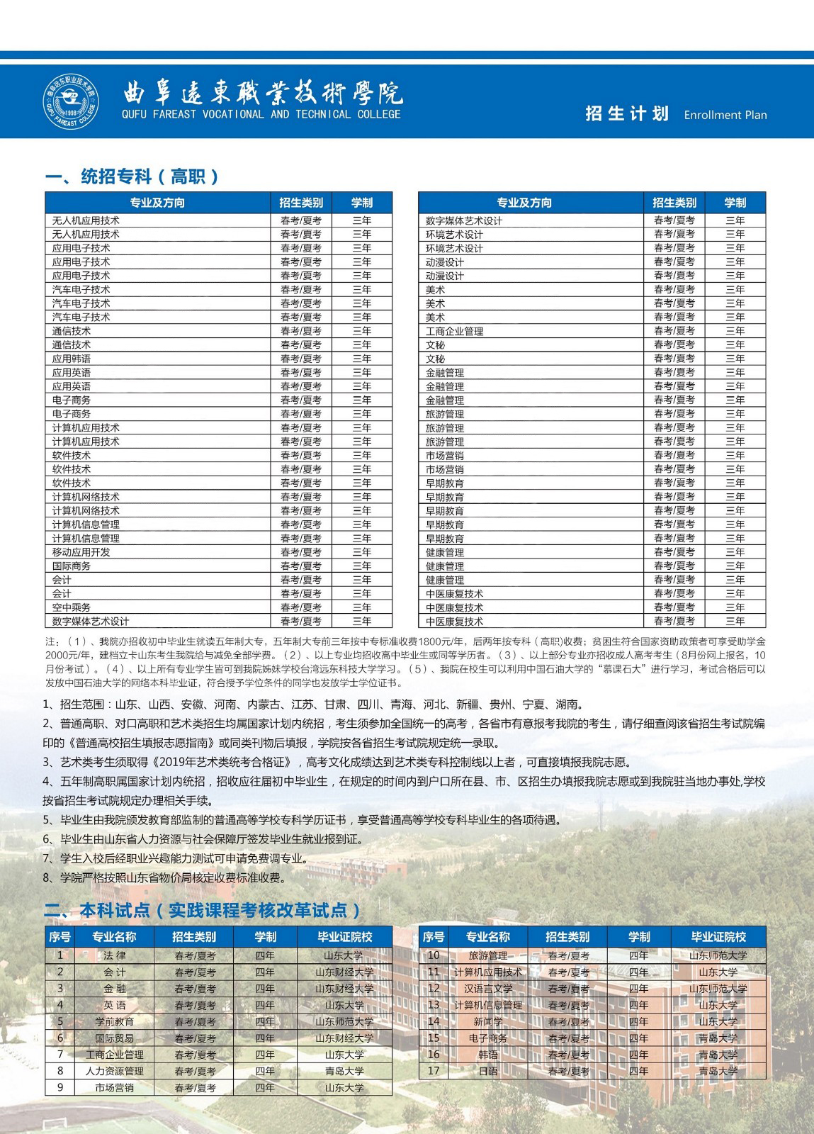曲阜远东职业技术学院2019年招生简章