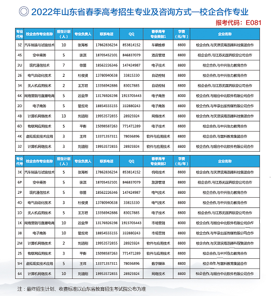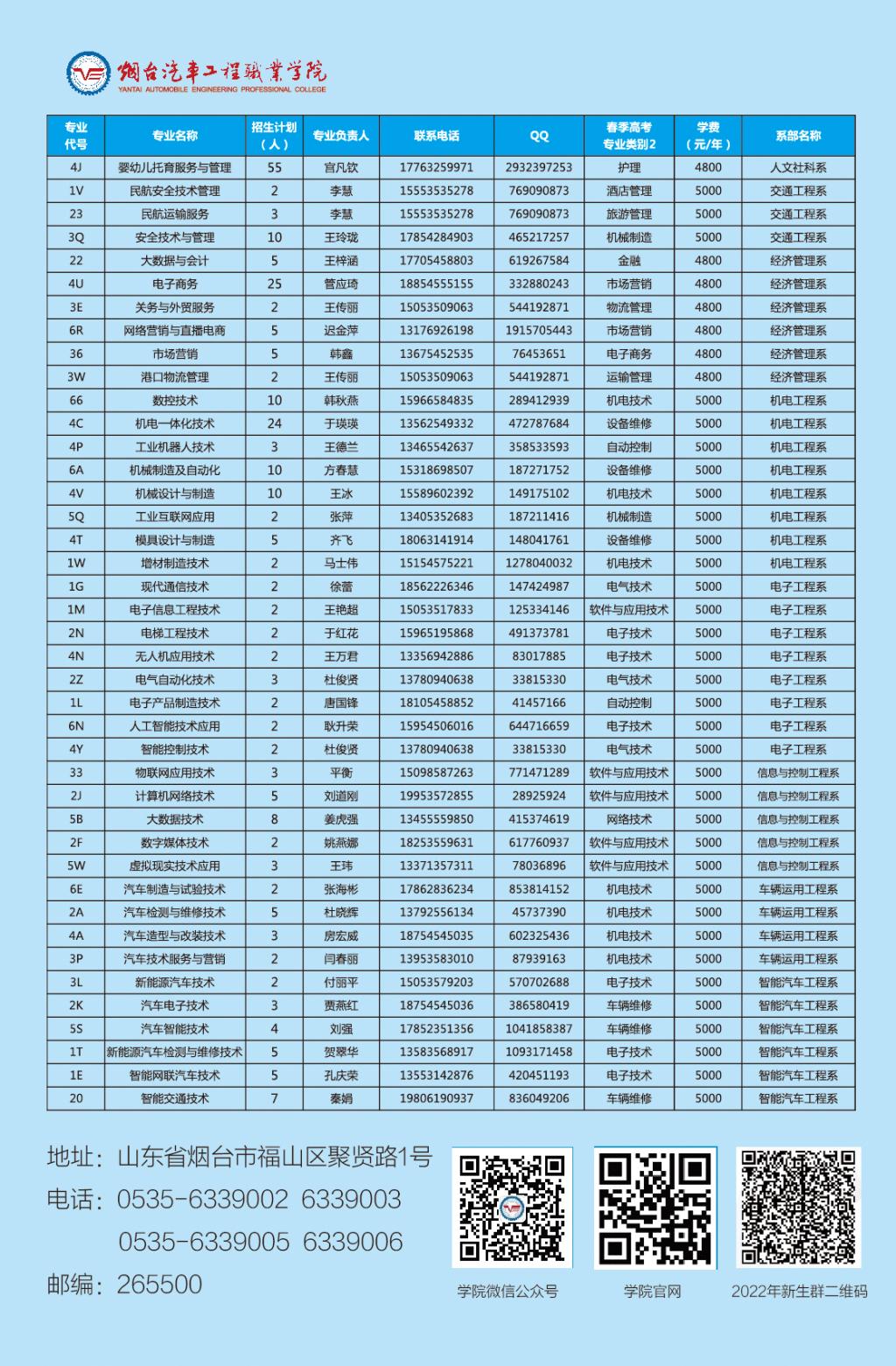 详见2022年《山东省普通高校招生填报志愿指南》专科(高职)第173-174页