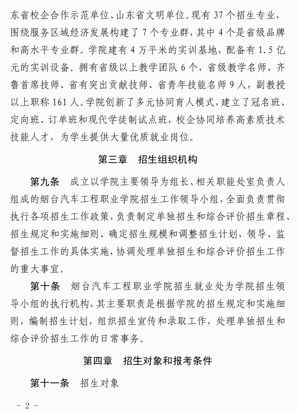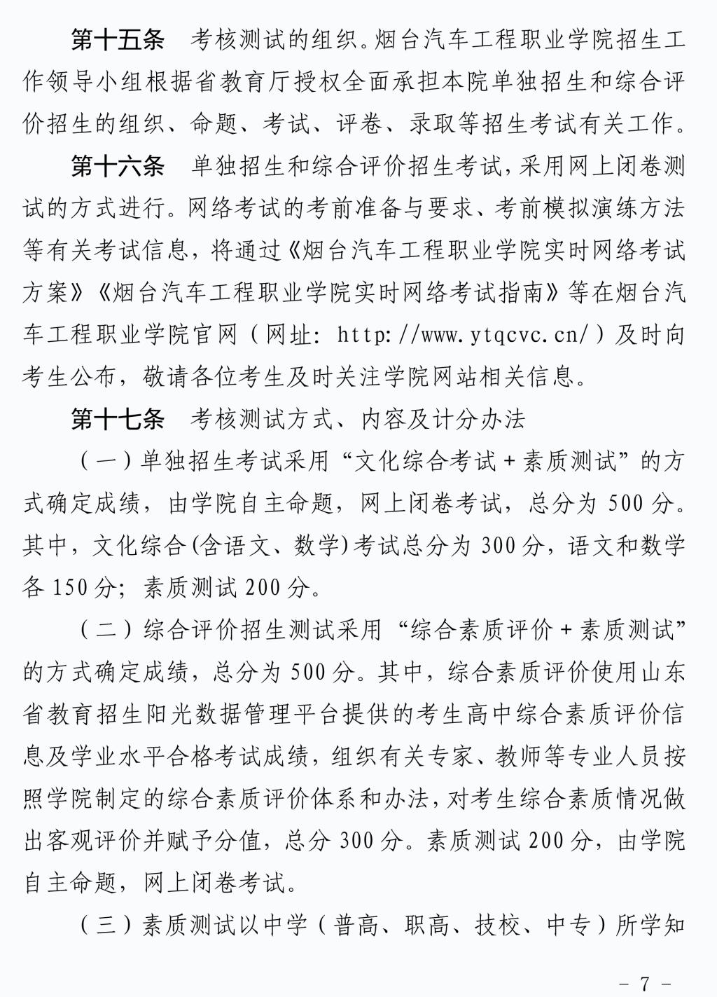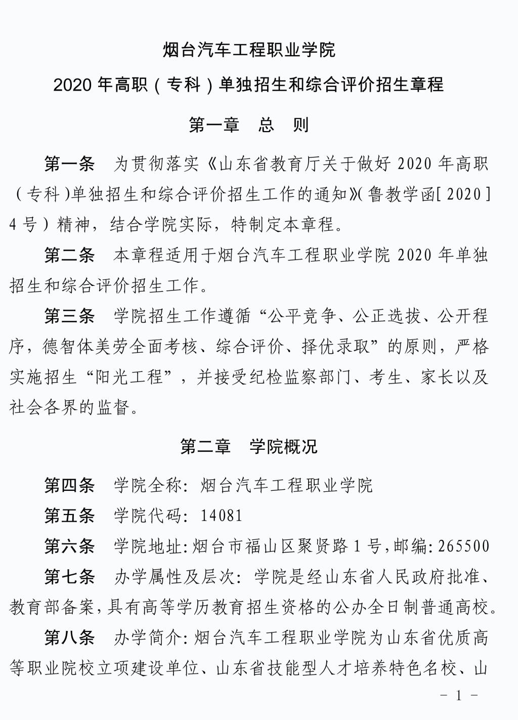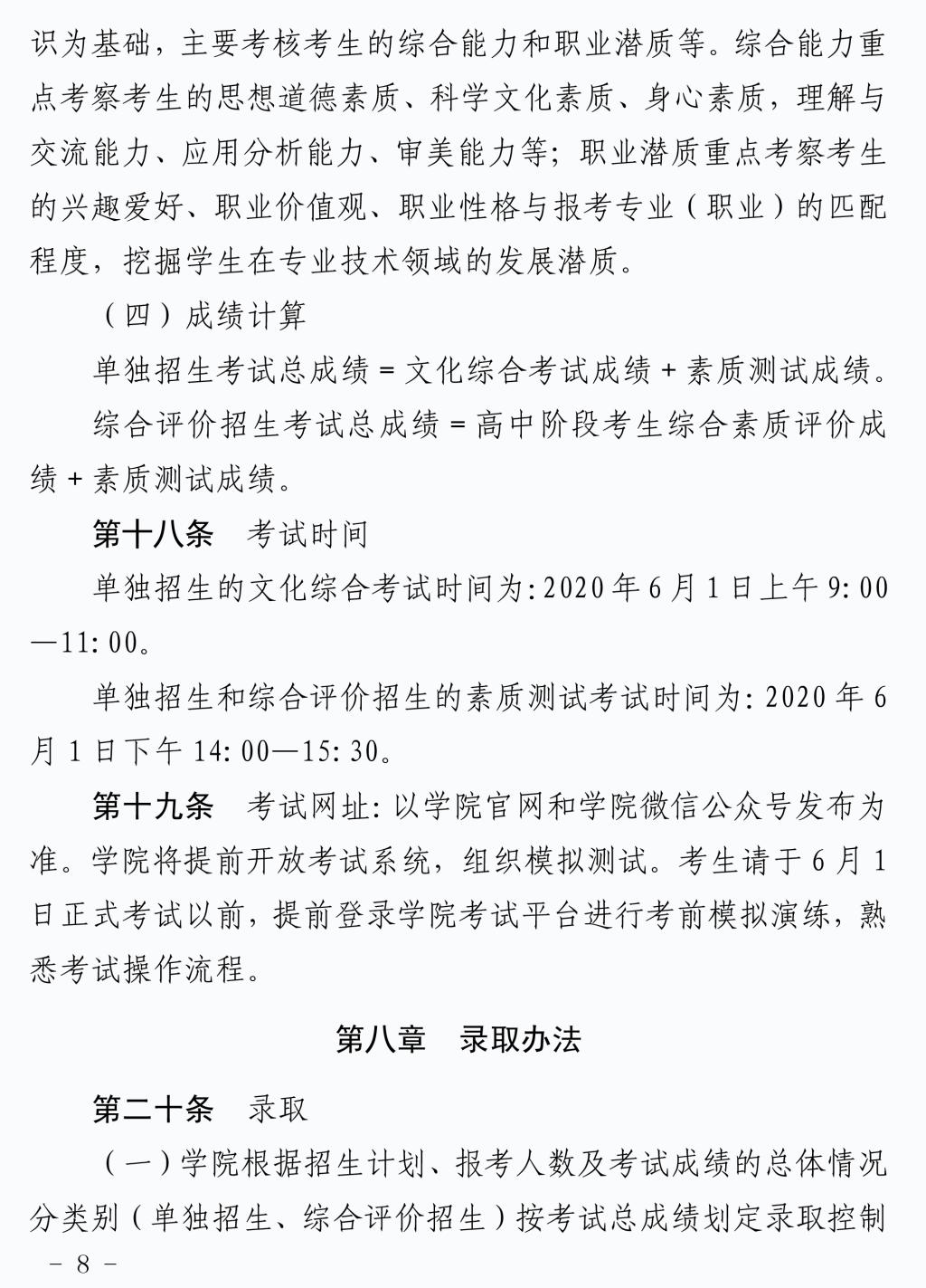 2020年单独招生和综合评价招生章程