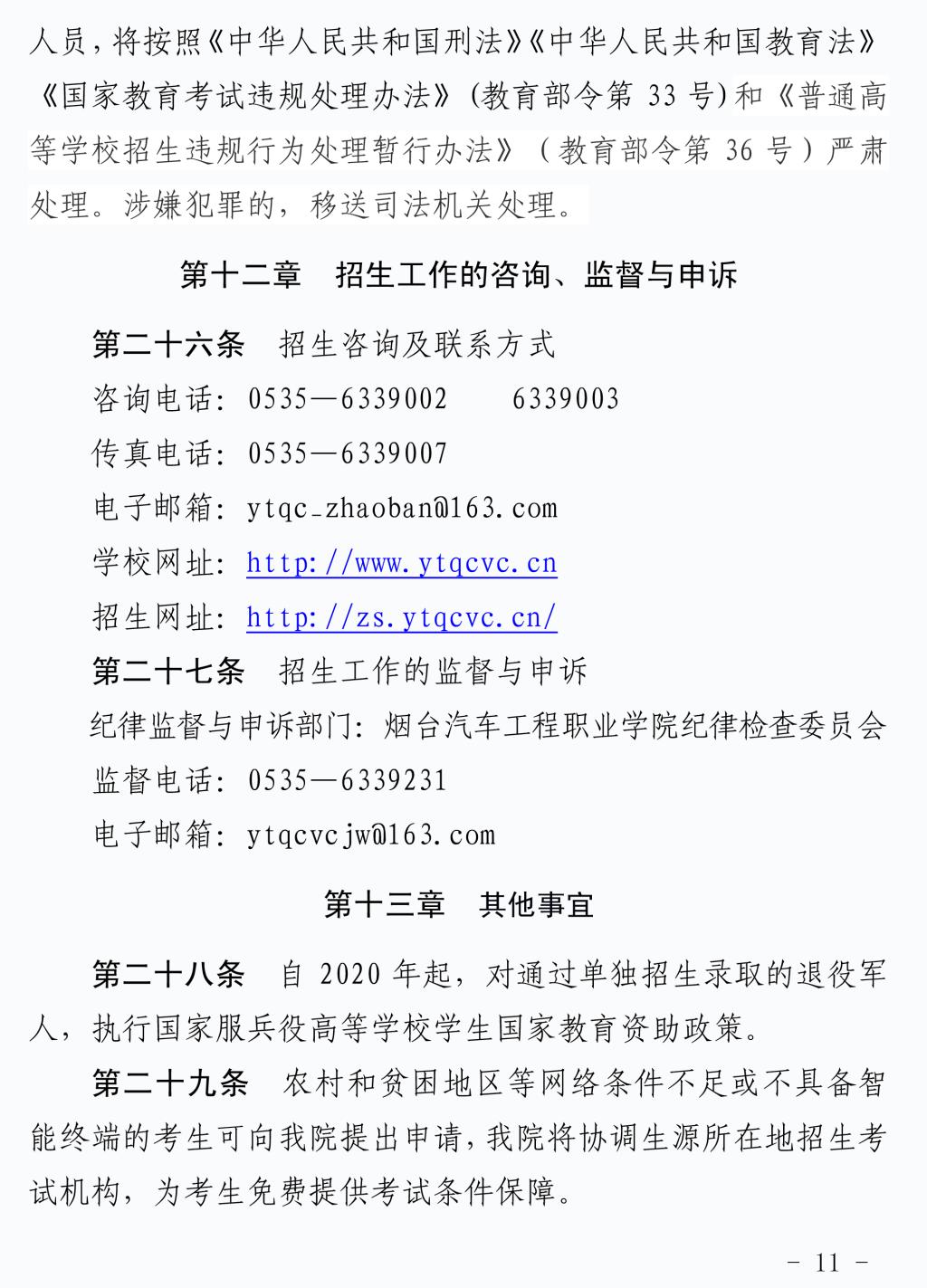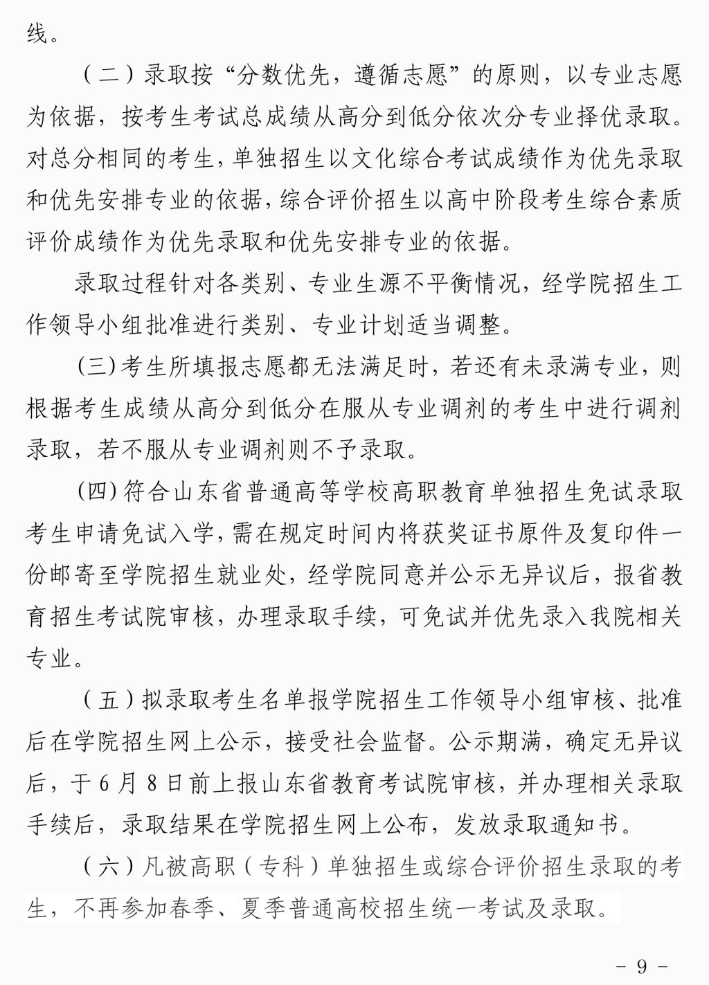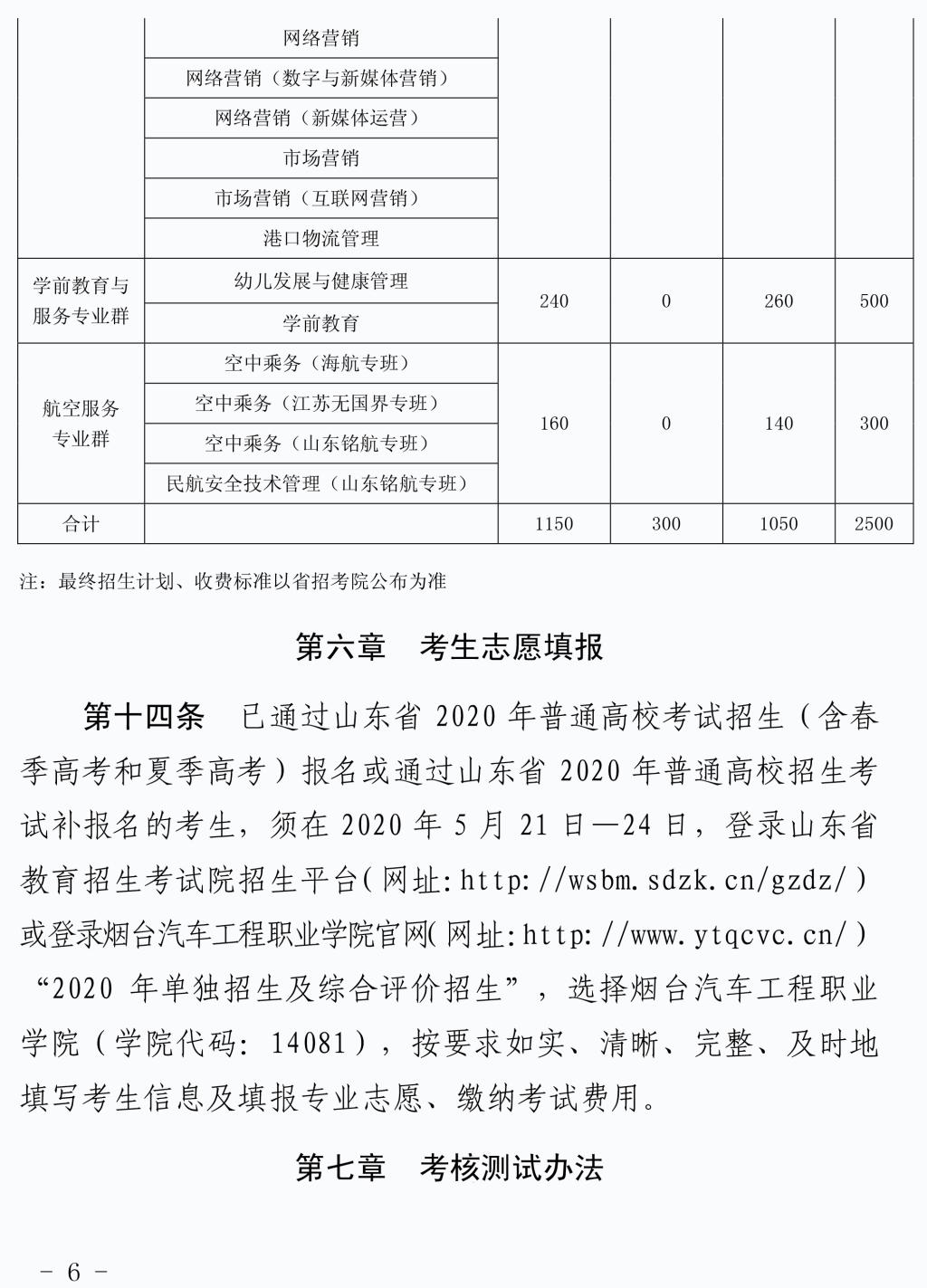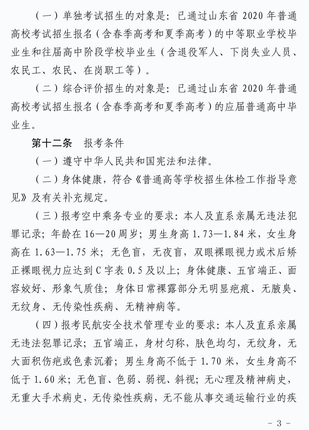 2020年单独招生和综合评价招生章程