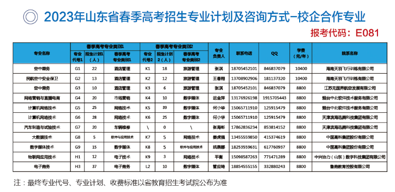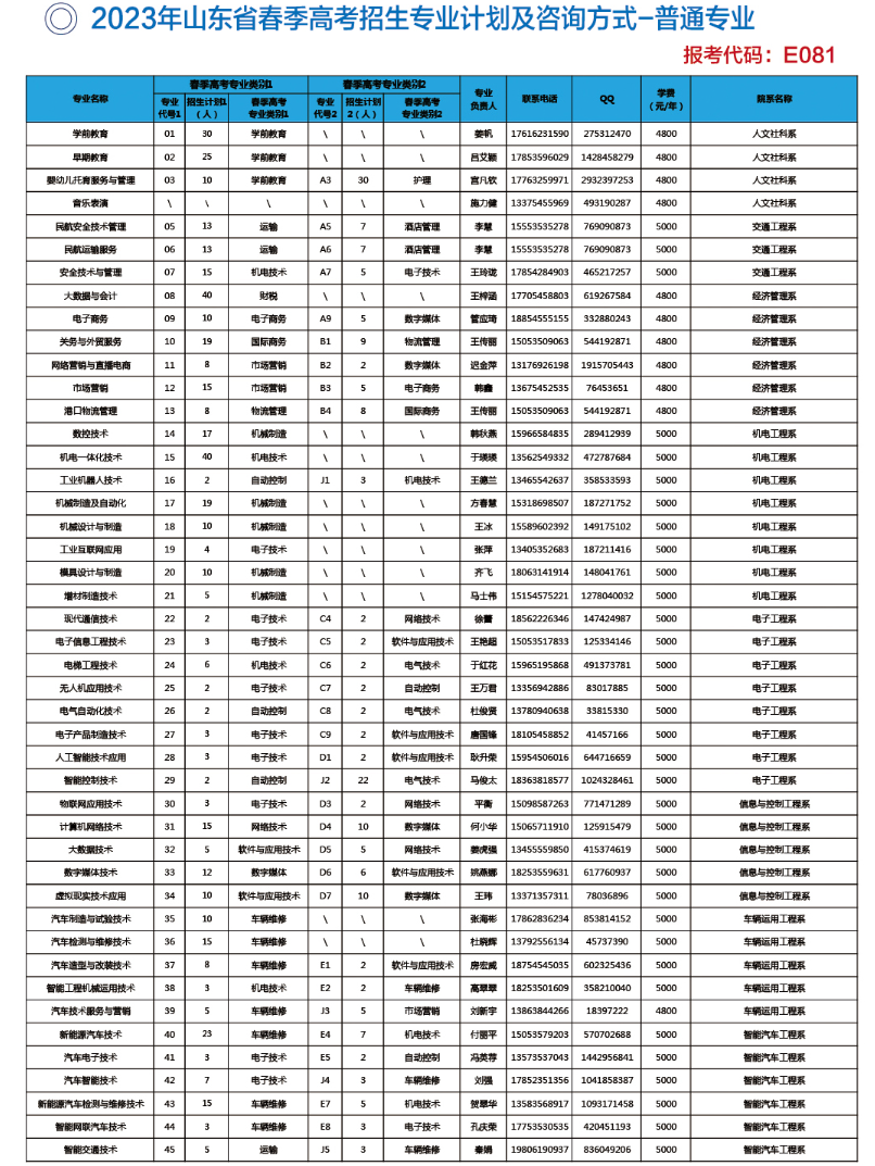 详见2023年《山东省普通高校招生填报志愿指南》专科(高职)第188--189页