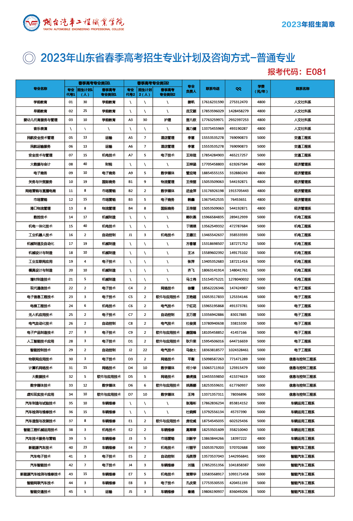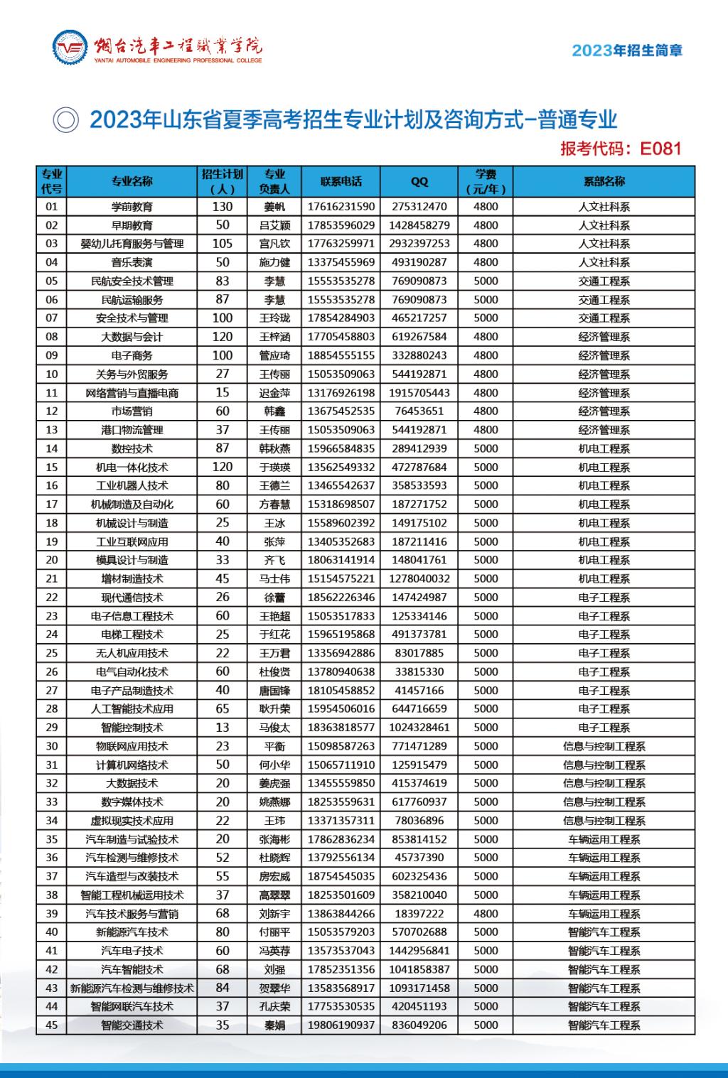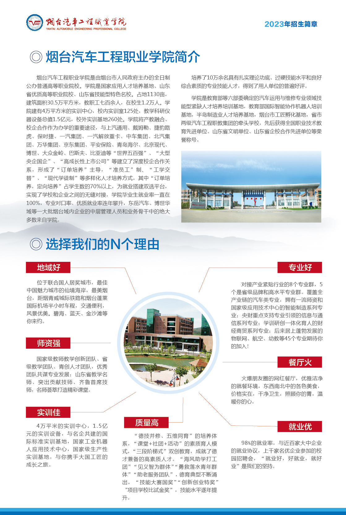 2023年烟台汽车工程职业学院高职(专科)招生简章