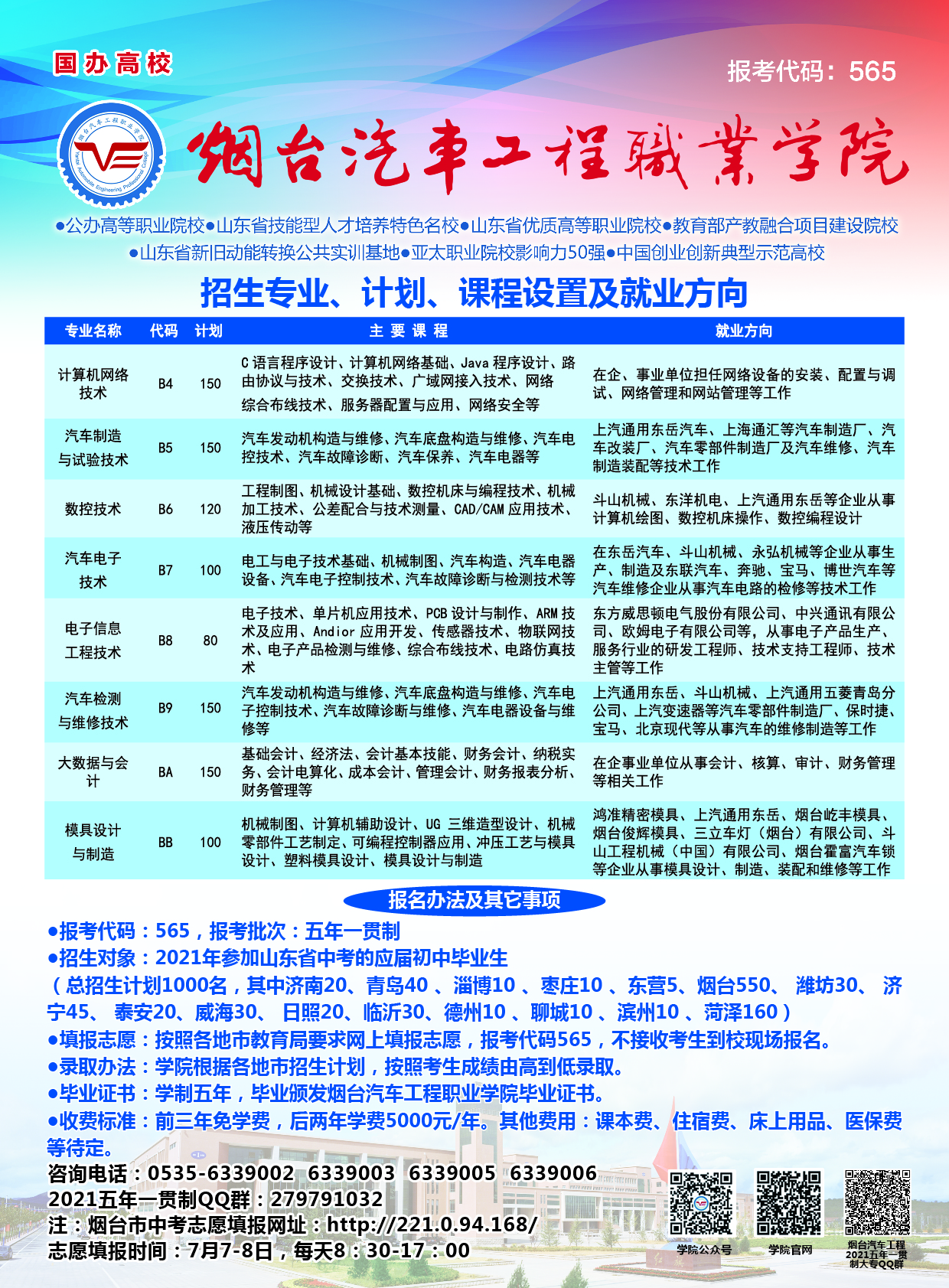 四、毕业证书:学制五年,毕业颁发烟台汽车工程职业学院毕业证书。