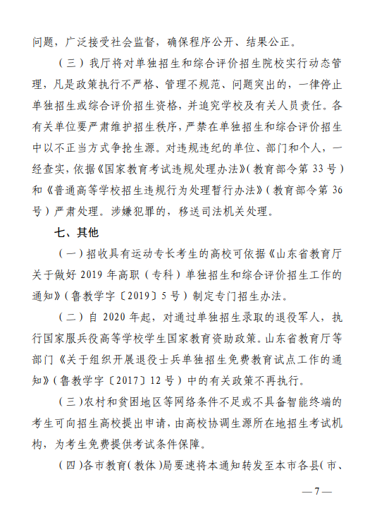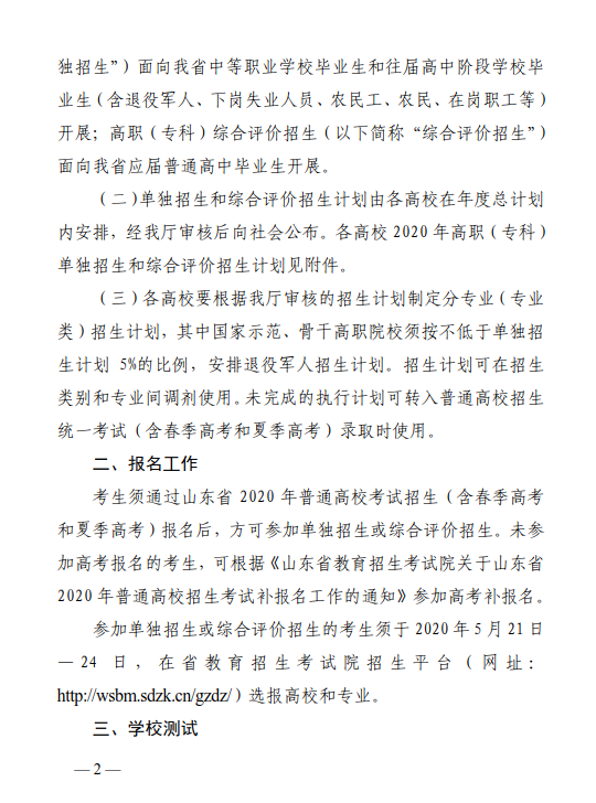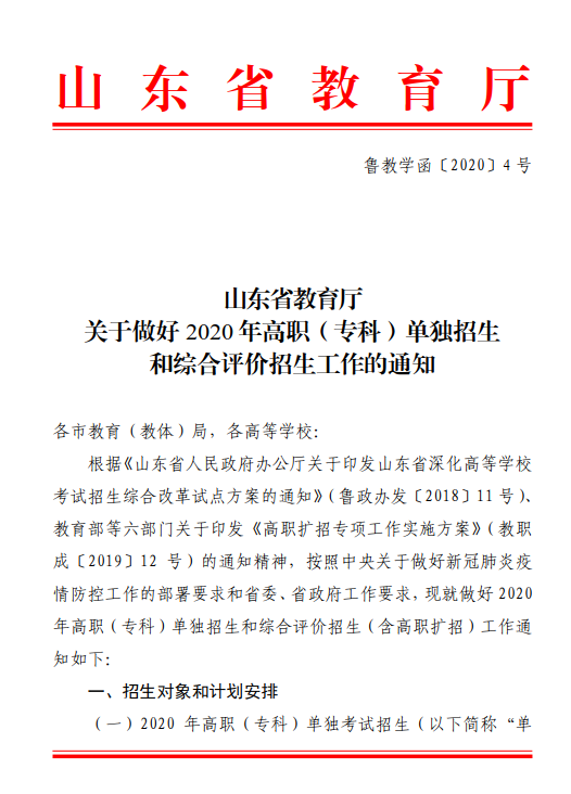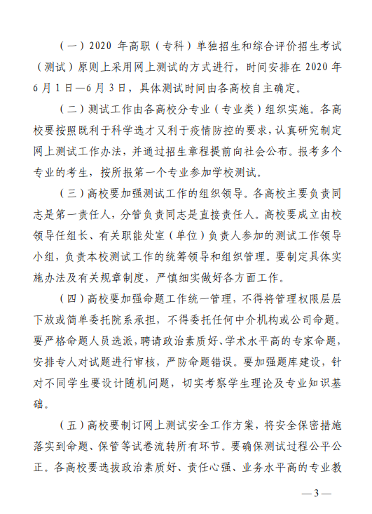 关于做好2020年高职(专科)单独招生和综合评价招生工作的通知
