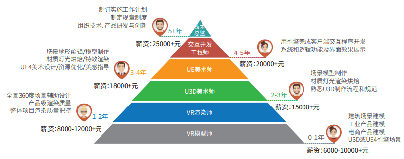 (1)VR模型师岗位:三维工业建模、三维动画设计、三维场景搭建等。
