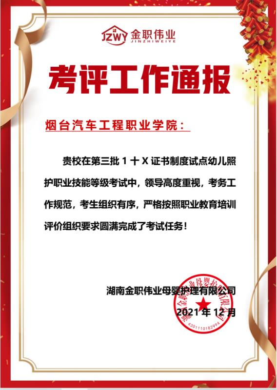 2021年,烟台汽车工程学院先后组织1+X幼儿照护试点证书申报、师资培训、考评员申报、学生培训、考点申报与建设、考证组织等工作,对标产业标准,做好课证对接,持续探索课证融通,不断提升学生职业能力。