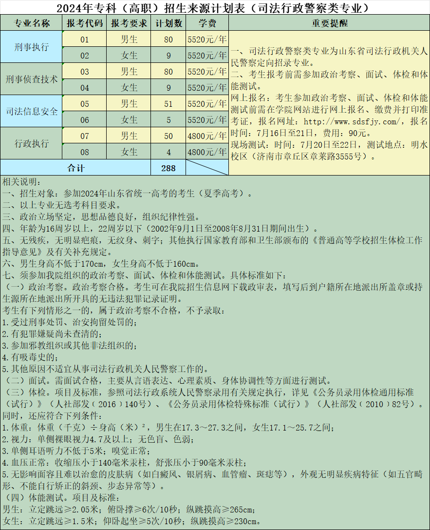 2024年专科(高职)招生来源计划表(司法行政警察类专业)