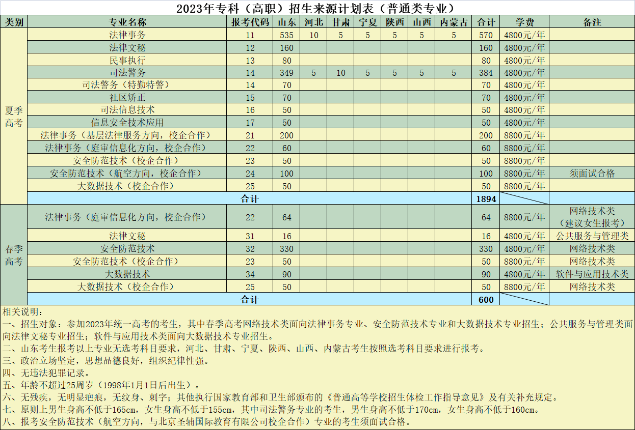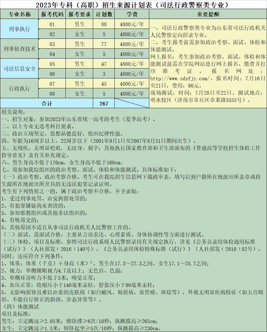 山东司法警官职业学院2023年招生简章