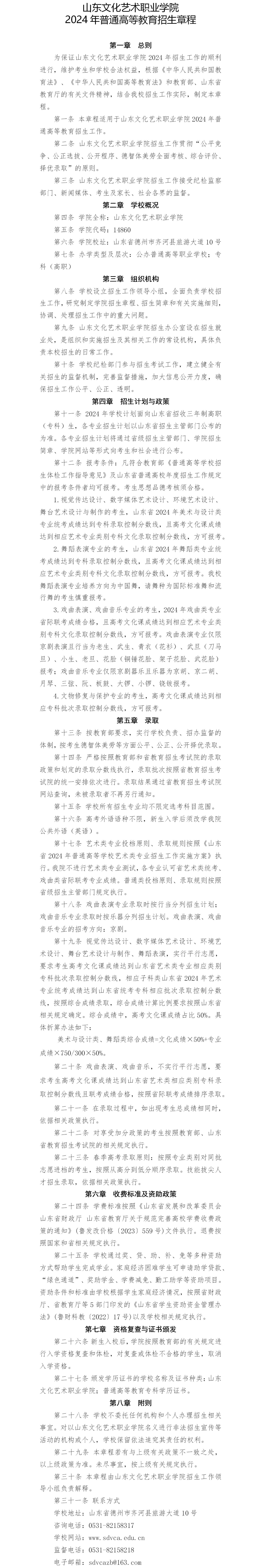 山东文化艺术职业学院2024年普通高等教育招生章程