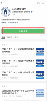 山西省财政税务专科学校2024年采用网上在线报名方式进行单招报名确认。请各位考生通过手机端扫码关注“山西财专招生”微信公众号,或电脑端登录学校官网、招生信息网,均可完成单招报名确认工作。