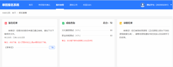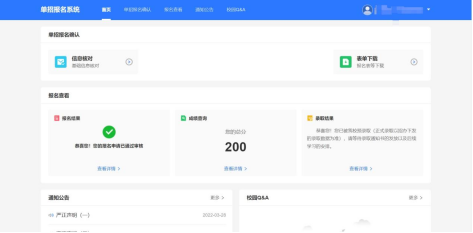 点击“报名查看”可进行报名结果、成绩、预录取结果查询及准考证下载。