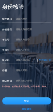 点击下方“核验身份”按要求使用“身份证号”、“考生号”等填写信息完成身份验证,注册成功后登录系统。(后续若密码忘记,请点击“找回密码”通过短信验证方式重置密码。)
