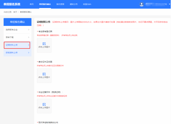 线下盖章后,点击“证明材料上传”进行资料回传。