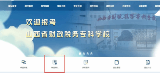 2、登录“山西省财政税务专科学校招生信息网”https://www.sxftc.edu.cn/zsxx/index.htm,点击“单招确认”进入登录注册页。