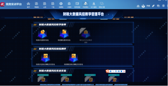 财税大数据应用专业校内实训室是智慧税务实训室,是山西省教育厅立项建设的高职教育高水平实训室。配备了先进的云桌面实训终端,安装了3台桌面云一体机服务器,纳米黑板1块,多功能智能交互屏1块,同步显示屏2块,13台pc机,54台云桌面一体机终端和显示器。安装了5类符合专业需要的财税实训软件,配置了与税务机关同步的自助办税终端机。既有税收征管环境,也有税收征纳和税收风险控制的大数据分析操作系统,主要满足学生纳税申报、税收征管流程、纳税筹划、纳税检查等税法相关课程的实训。