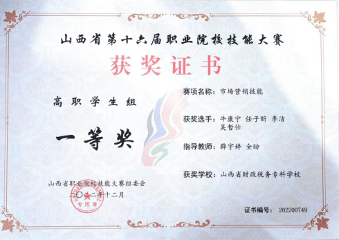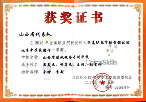 图 山西省职业院校技能大赛市场营销赛项一等奖