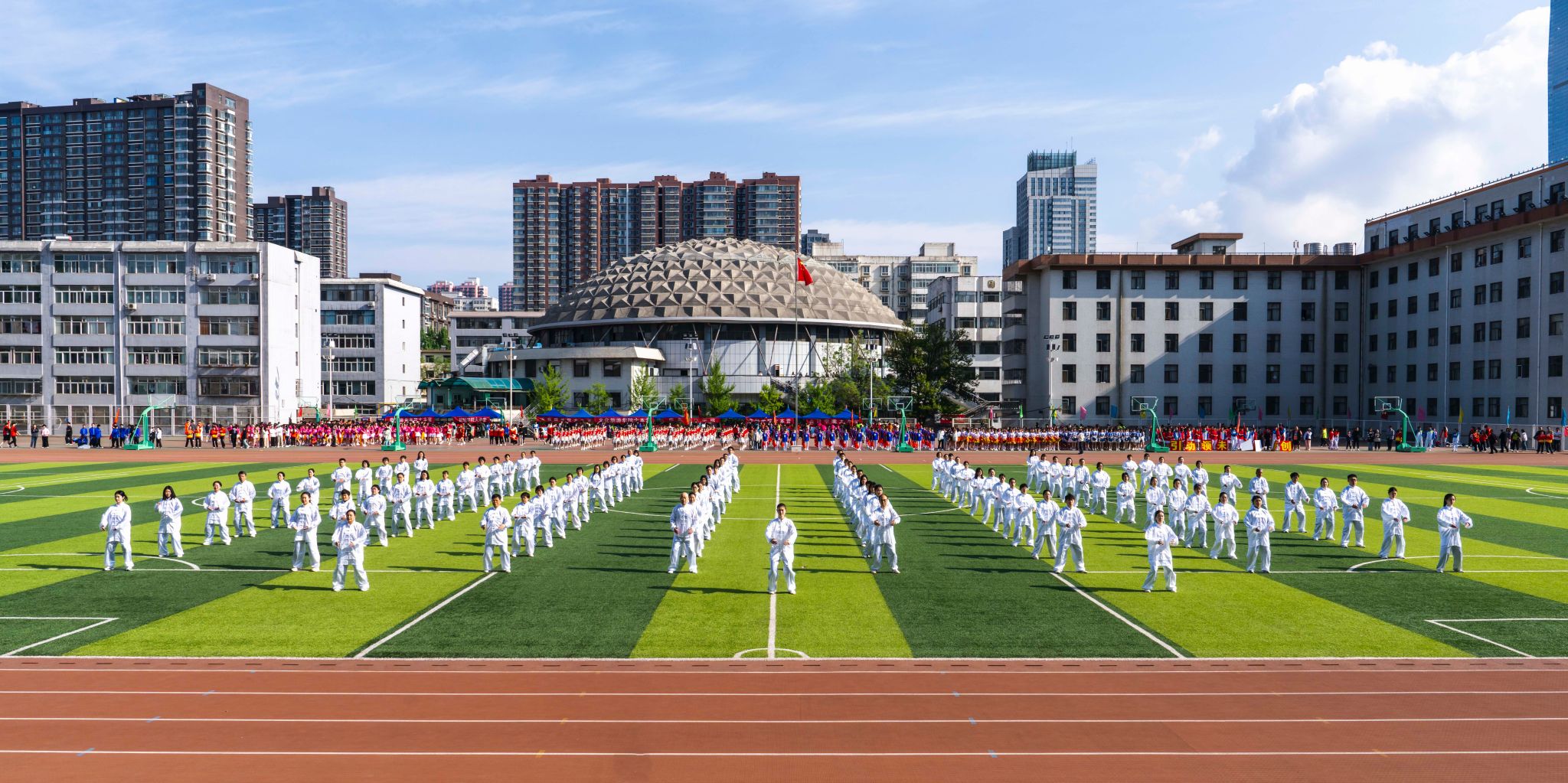 本届校运会共有1655名学生、400多名教职工参加了22项田径比赛、6项阳光体育大赛和5项教职工趣味比赛。意气风发少年时,鲜花怒马似锦华。短短一天半的比赛中,有冲刺终点的爆发,有坚持到底的努力,在奔跑中带起风,成为风,坚定的步伐飒沓如流星,目光如炬,步步向前。