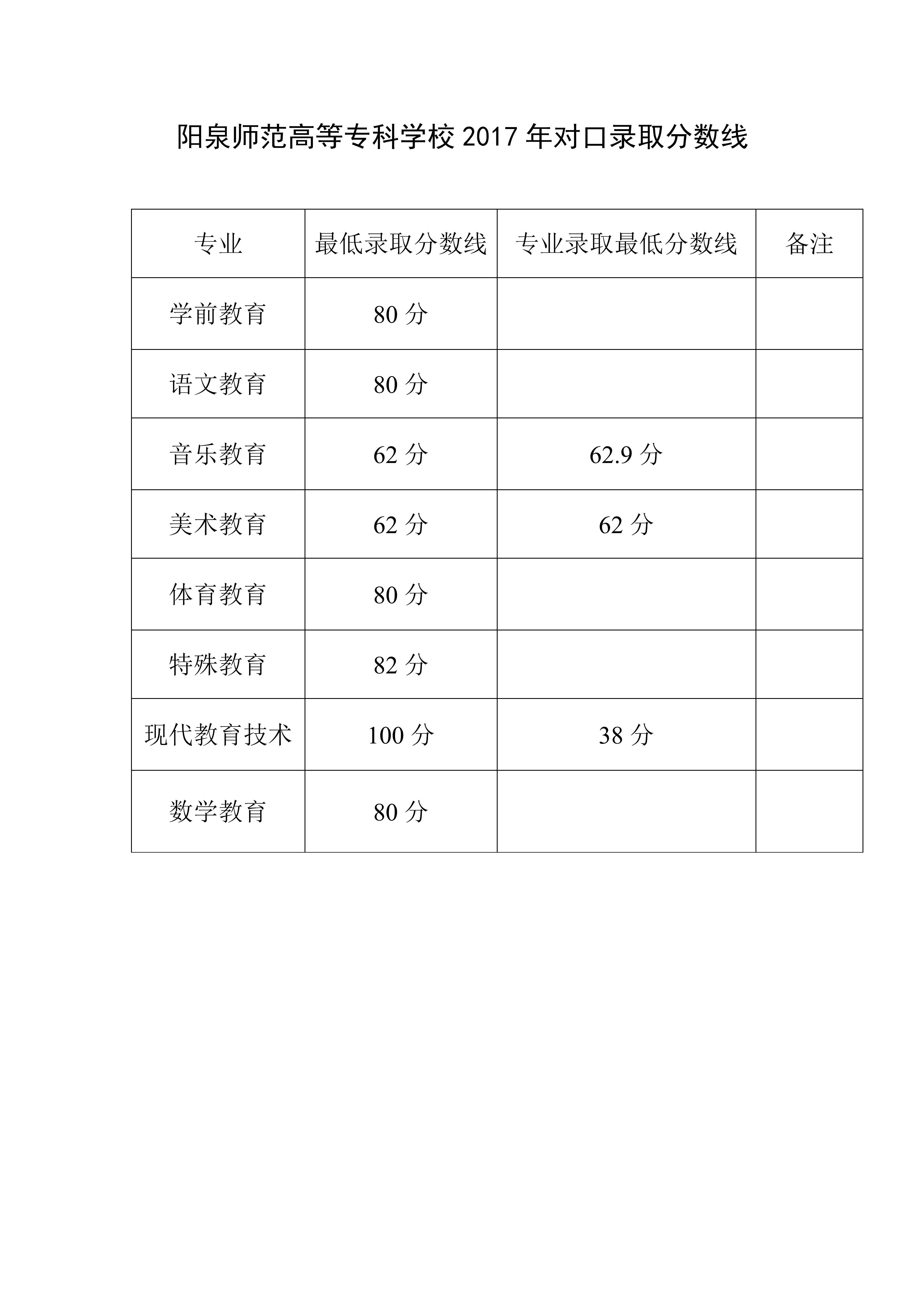 2017年我校对口录取分数线