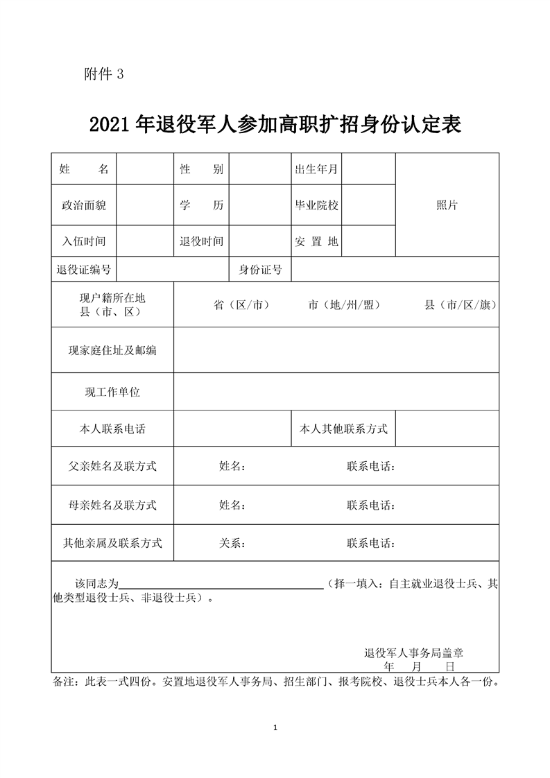 附件3:2021年退役军人参加高职扩招身份认定表.pdf