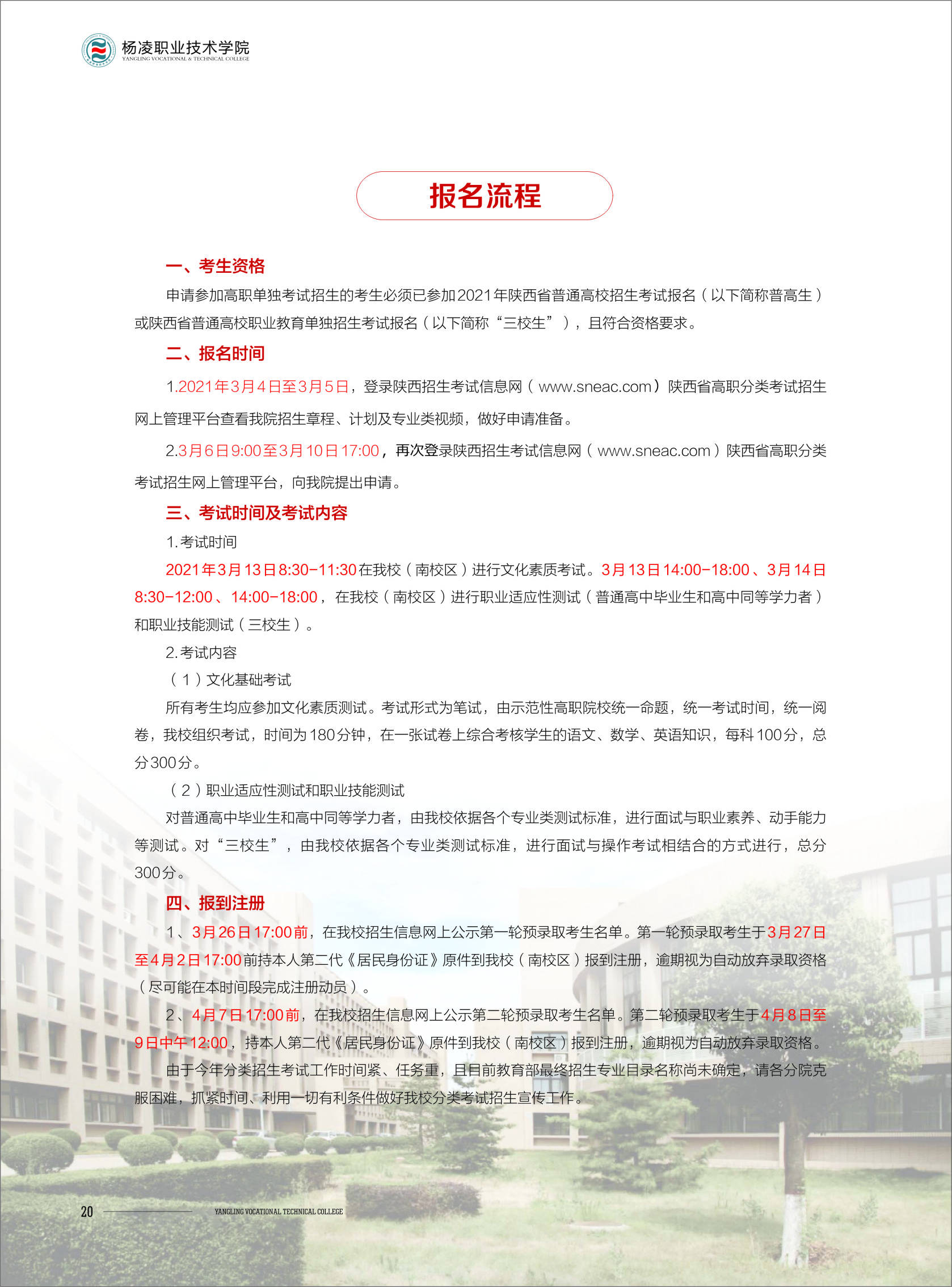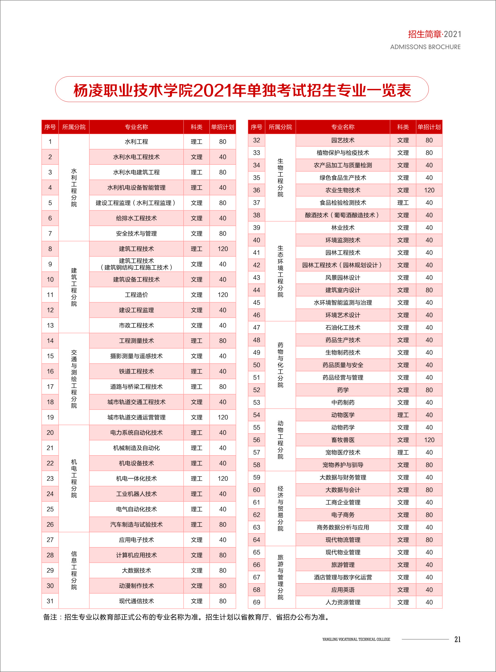 杨凌职业技术学院2021年示范高职单独考试招生简章