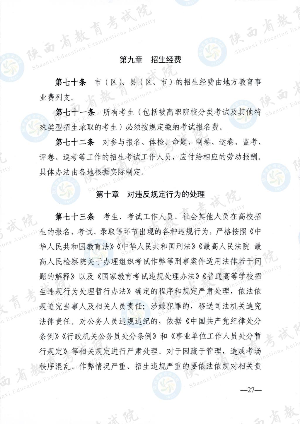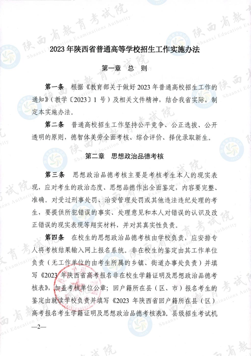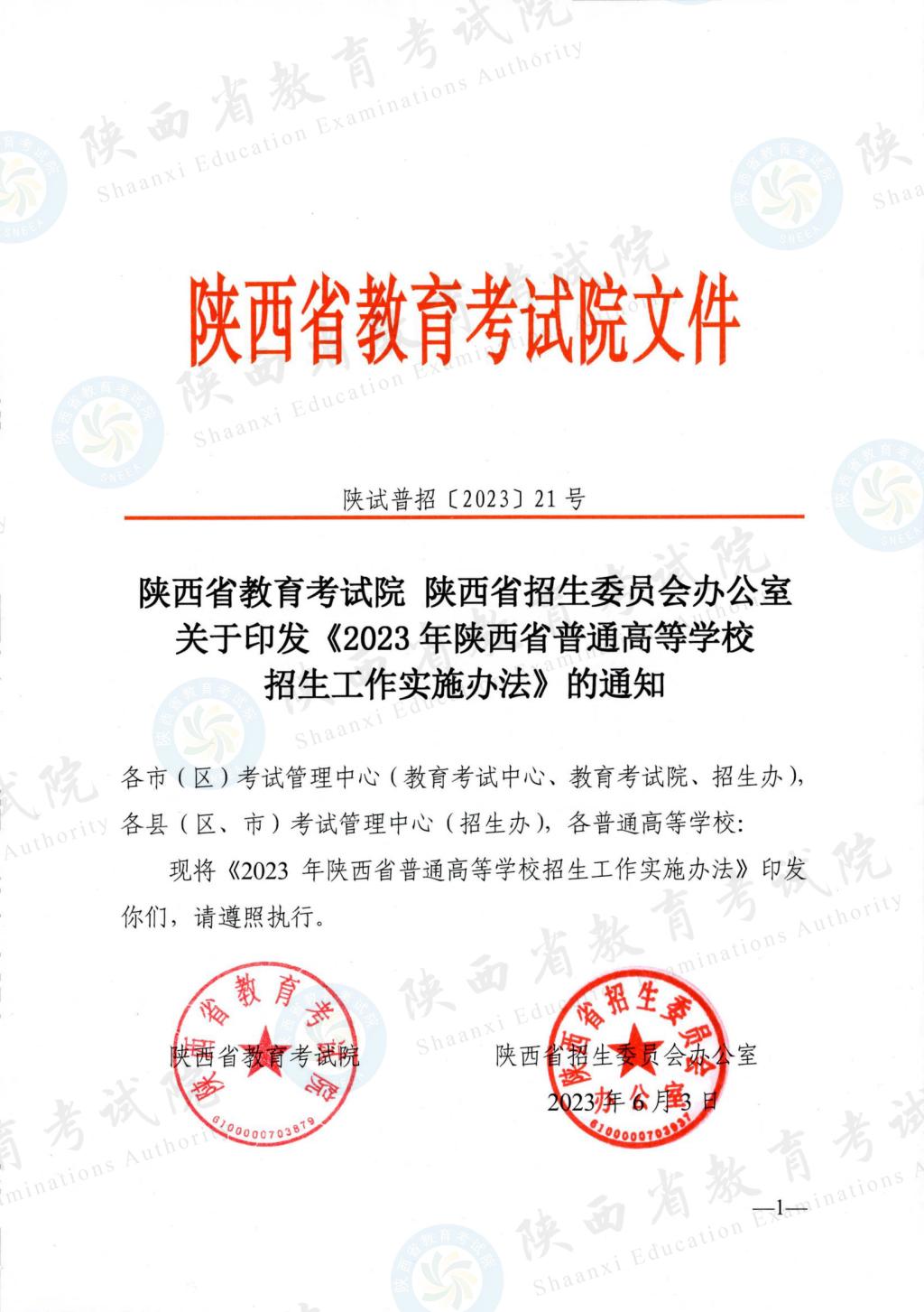 陕西省教育考试院 陕西省招生委员会办公室关于印发《2023年陕西省普通高等学校招生工作实施办法》的通知
