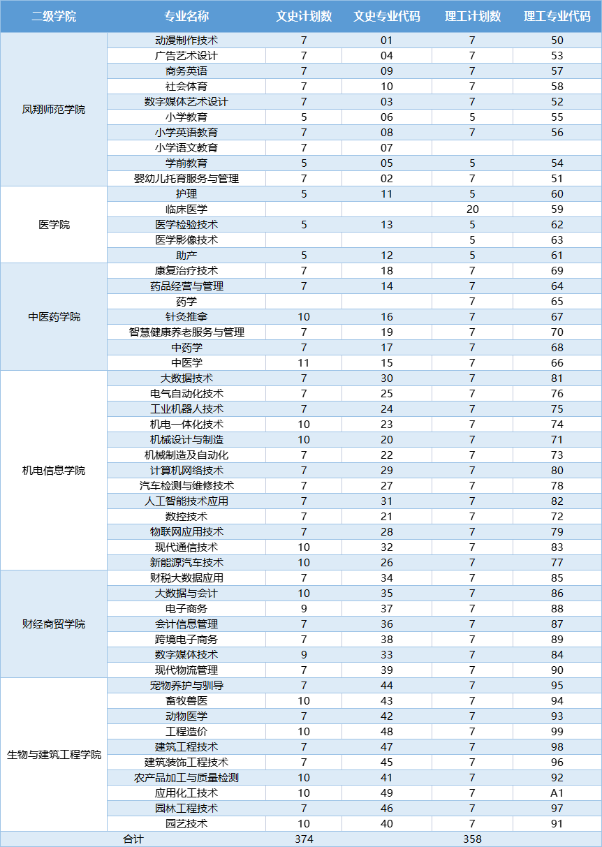 2023年宝鸡职业技术学院陕西省高职计划分布表