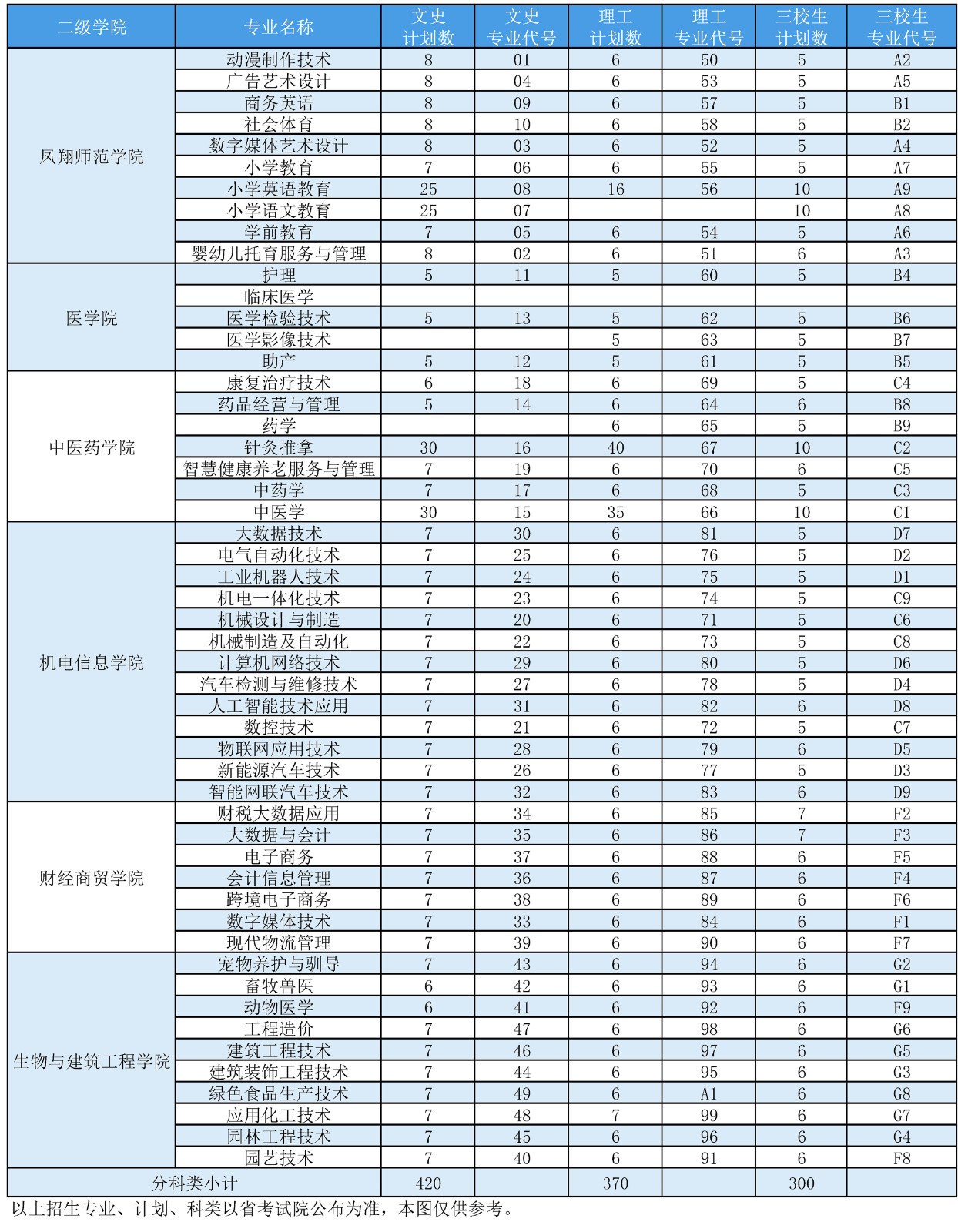2024年宝鸡职业技术学院陕西省高职计划分布表