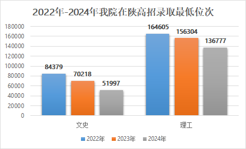 我院2024年在陕西三年制普通类理工录取最低分362分(最低位次136777),较2023年最低分266分(最低位次156304),最低分增加96分,位次提升19527。文史录取最低分386分(最低位次51997),较2023年最低分351分(最低位次70218),最低分增加35分,位次提升18221。