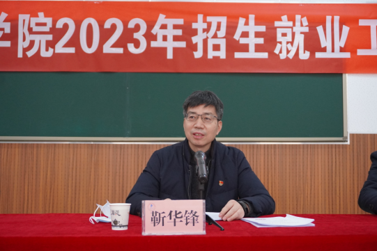 靳华锋在讲话中肯定了我校2022年招生就业工作取得的成绩,他指出2023年我们的任务是继续巩固成果,提升生源质量、实现学生优质就业。强调招生、培养、就业三者密不可分、相辅相成,我们要把功夫做到日常、抓住细节、切实做好各项工作。