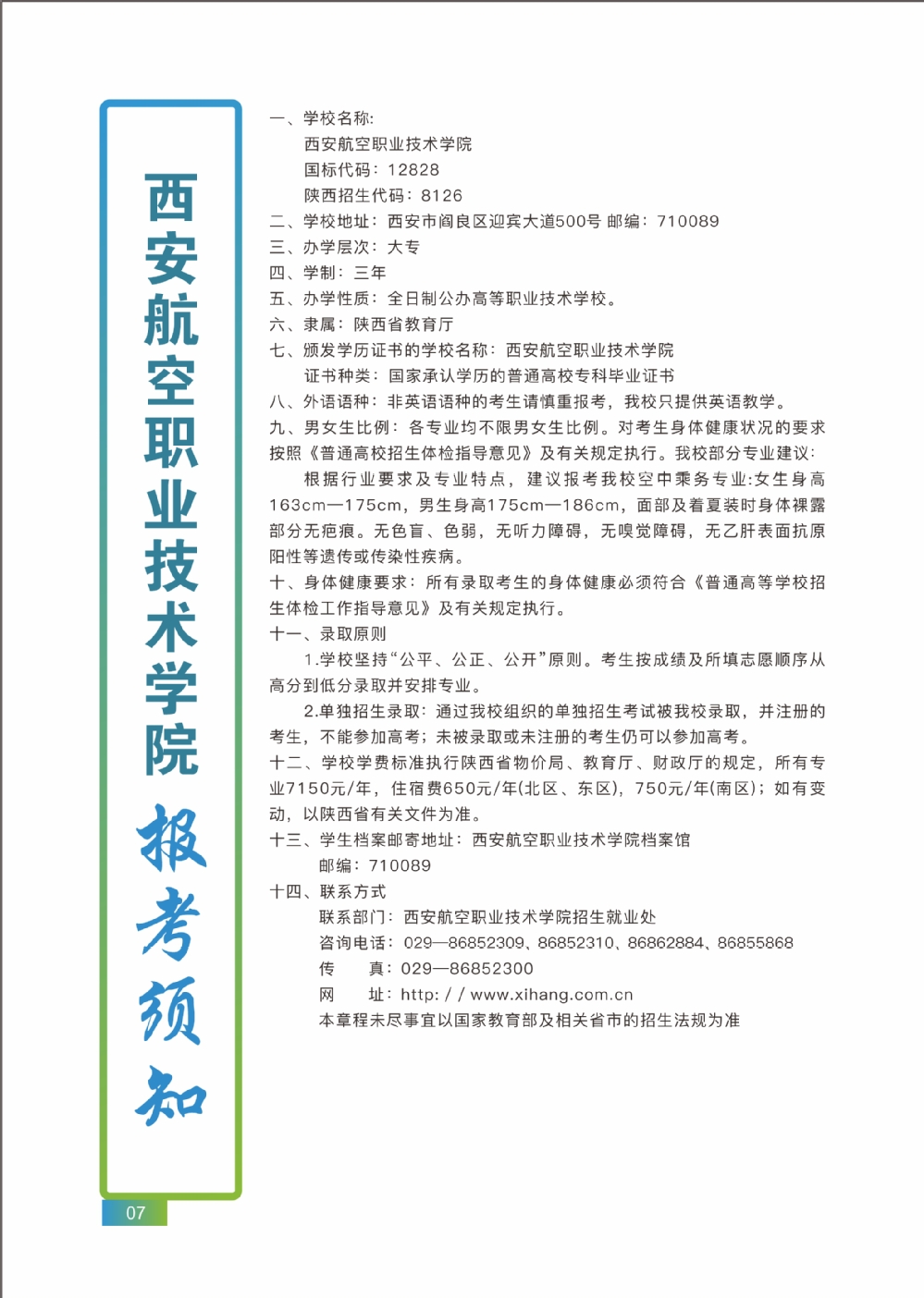 西安航空职业技术学院2023年示范高职院校单独考试招生简章