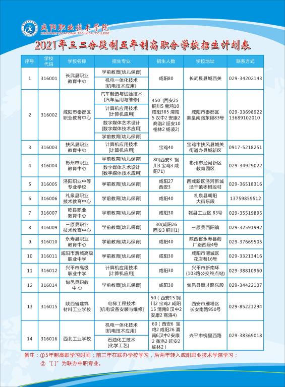 2021年三二分段制五年制高职联办学校招生简章