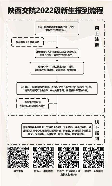1.按照疫情防控工作要求,所有2022级新生须登录“陕西交通职业技术学院”APP,在数据上报中填报个人14天行动轨迹和健康状态。