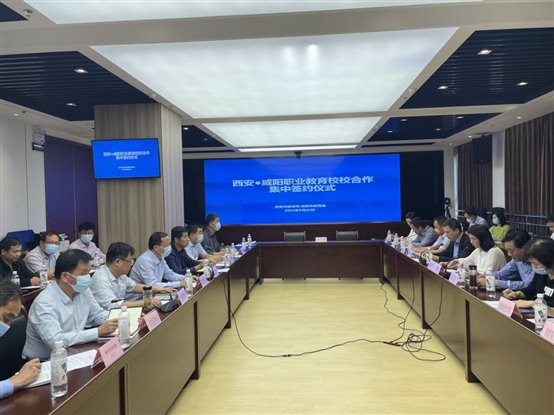 9月22日,在西安教育融媒体中心举行西安·咸阳职业教育校校合作集中签约仪式,西安、咸阳市教育局分管领导及各院校负责同志参加此次会议,我校应邀参加并进行现场签约,仪式由西安市教育局职成处处长潘建宏主持。