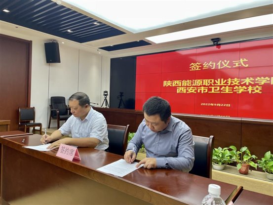 仪式中,我校与西安市卫生学校签订了校校合作协议,西安市卫生学校是我校的优质生源基地,多年来为我校输送了大量优秀的学生,双方共同培养的学生在全国及全省的各项技能大赛中多次斩获优异的成绩。此次签约合作两校将继续发挥各自办学定位、优势和特色,深化校际之间的沟通与交流,进一步拓展合作领域的深度与广度,不断创新合作共赢的方式与机制,提升合作成果的质量和效益,实现优质资源互利互惠和优势互补,提高各自办学能力和人才培养水平,为各自学校的改革和发展注入新的生机与活力。