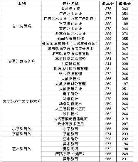 陕西青年职业学院2024年综合评价考试分系分专业录取分数