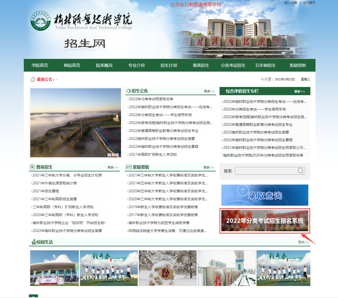 直接登录学院招生就业处官网:http://www.yulinvtc.edu.cn/zsw/