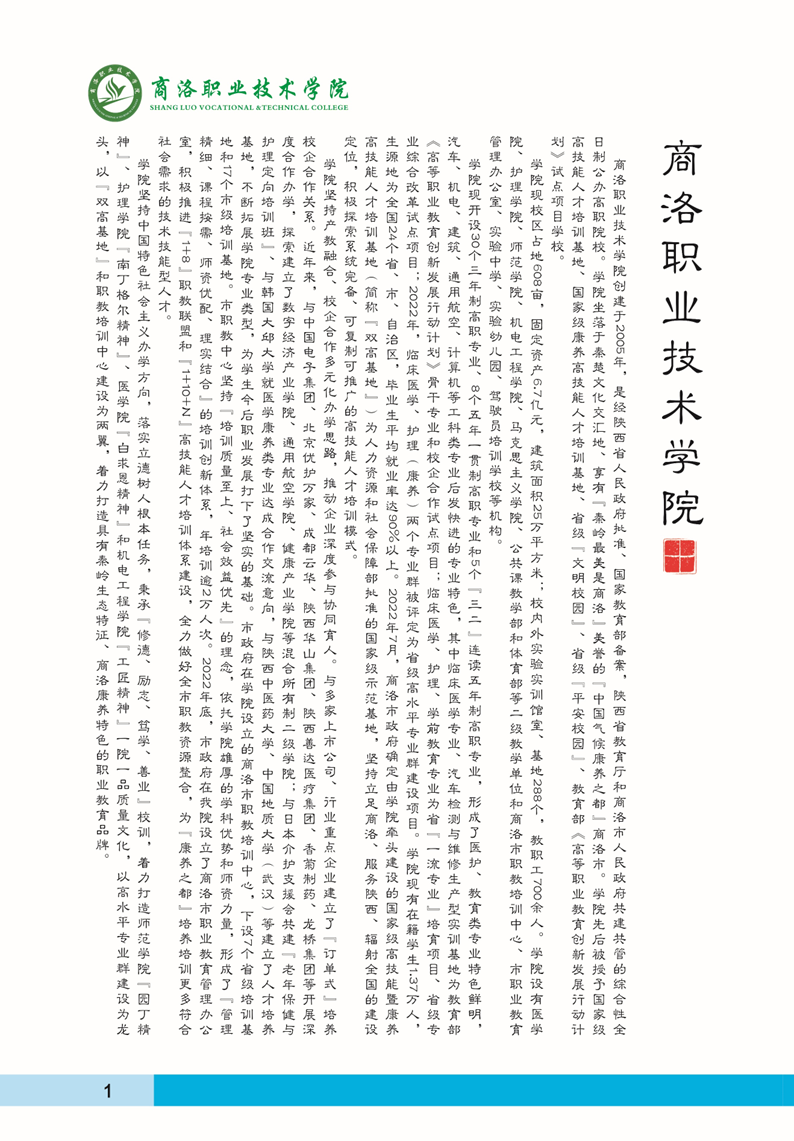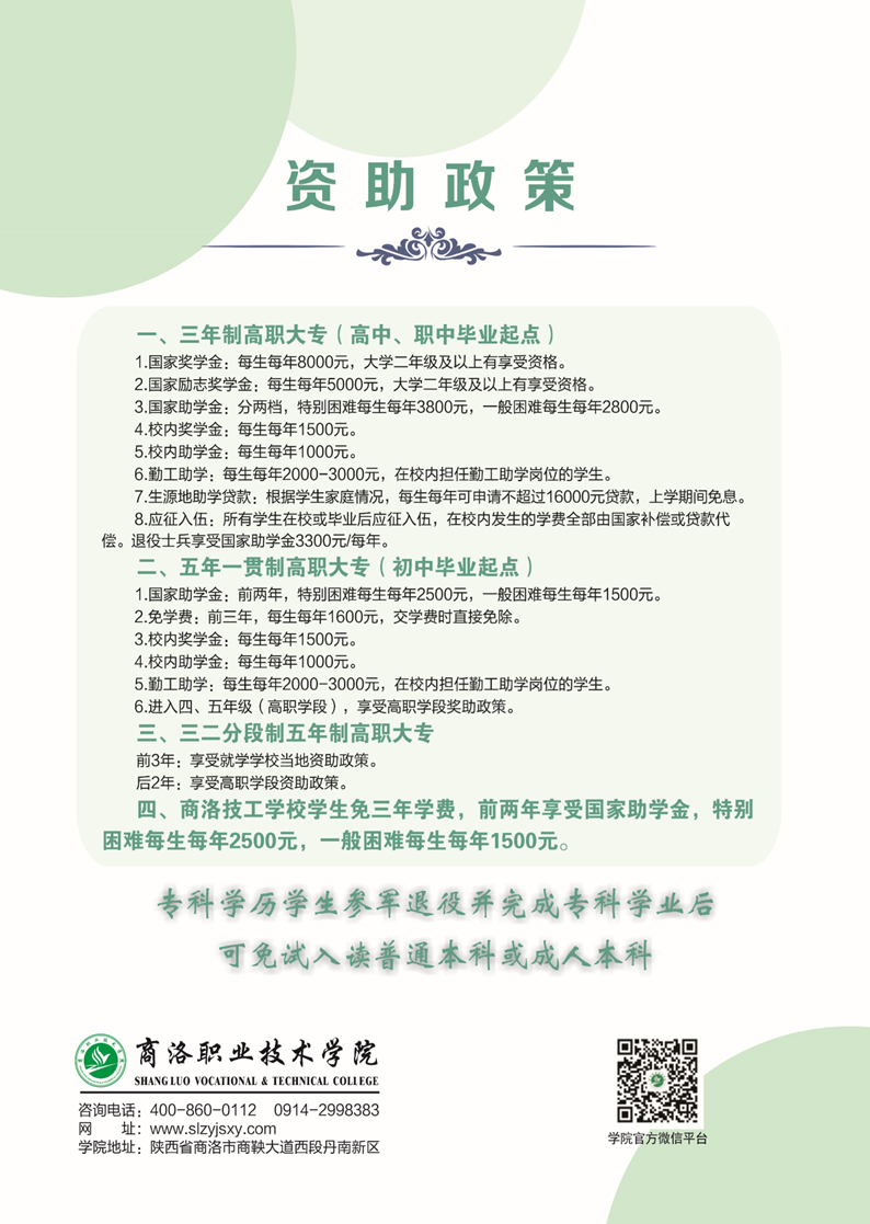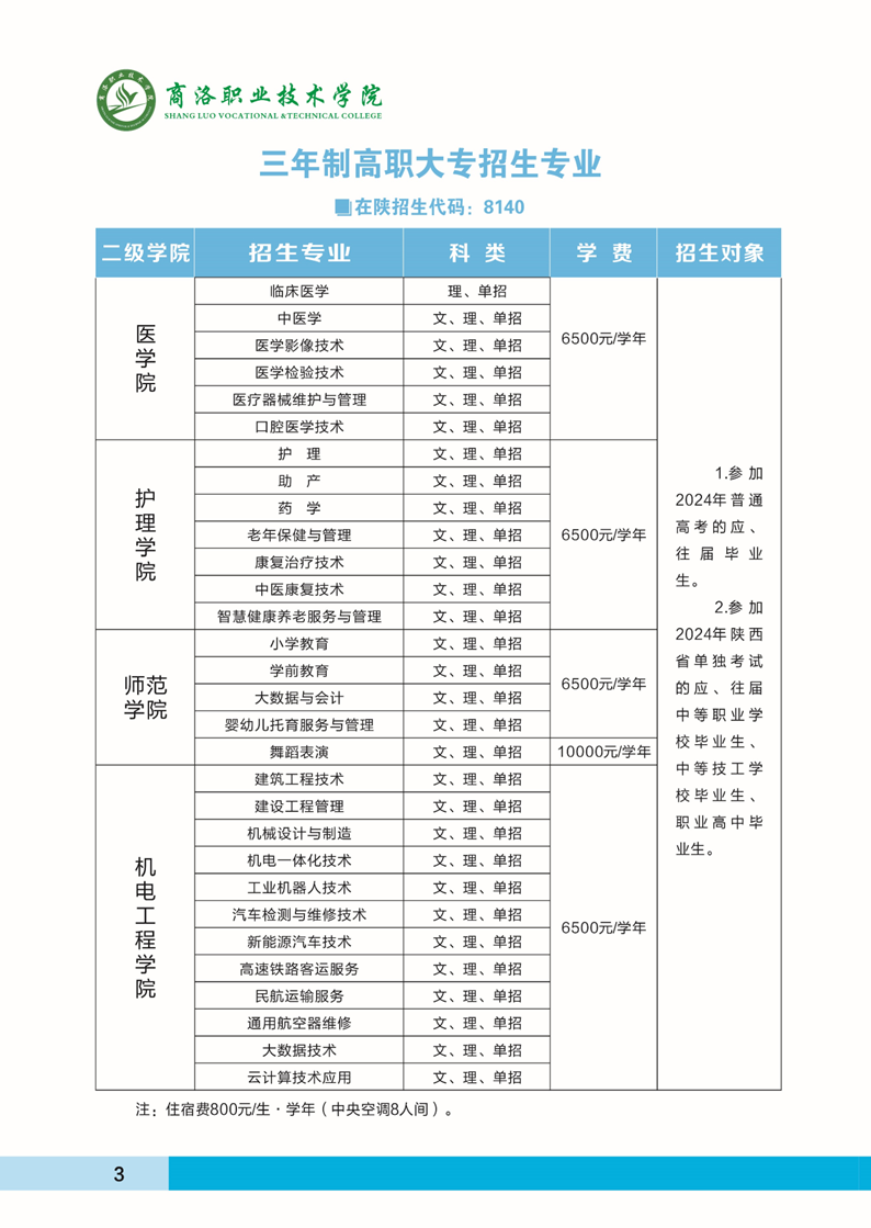 商洛职业技术学院2024年招生简章