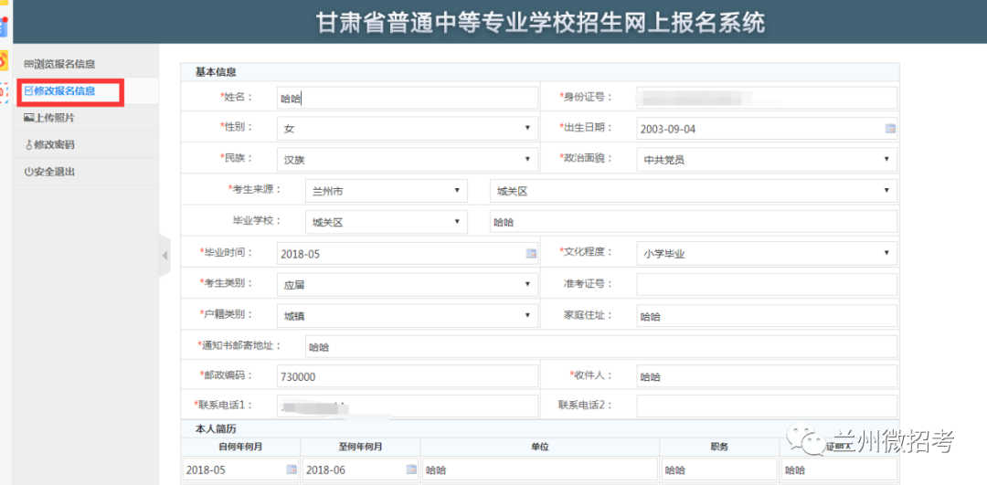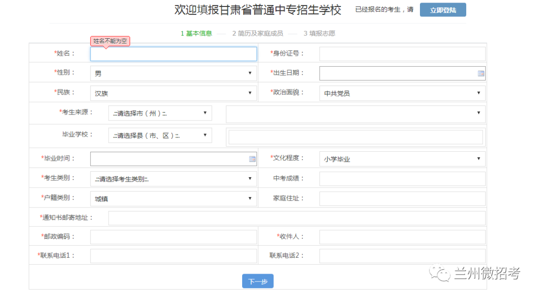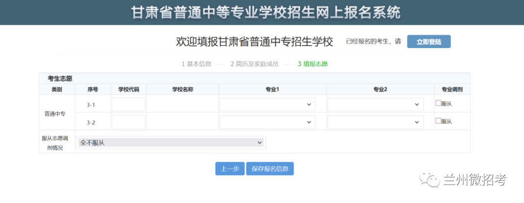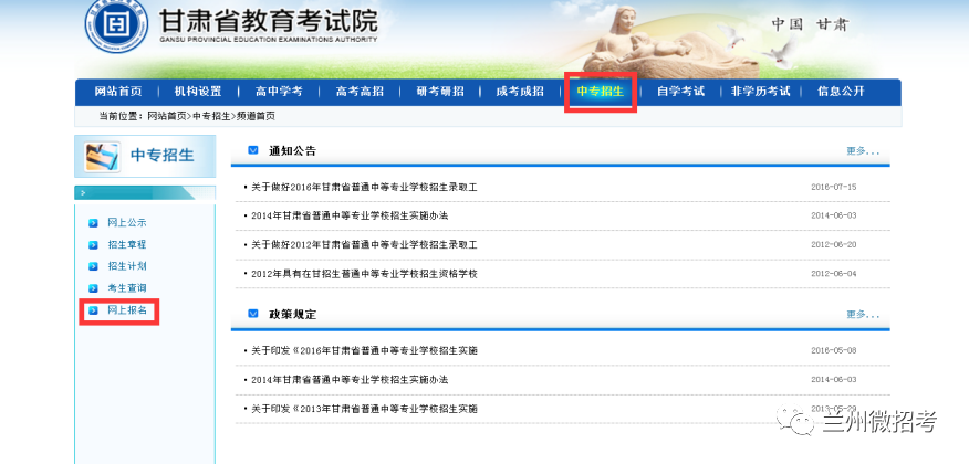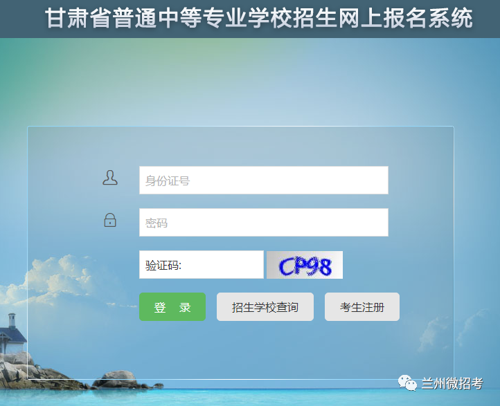考生按上述方法登录至甘肃省普通中等专业学校网上报名系统。