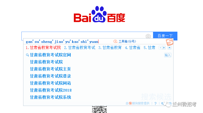 一、登录 中专报名网站方法一登陆中专报名系统网址:zzwb.ganseea.cn方法二1.百度搜索甘肃省教育考试院,然后进入甘肃省教育考试院主页面。