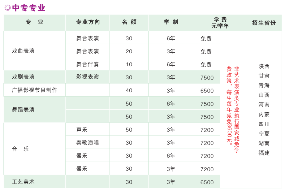 陕西艺术职业学院2016年中专、五年一贯制大专招生计划
