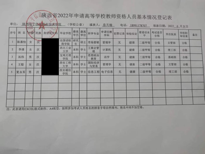 2022年申请高等学校教师资格人员情况公示