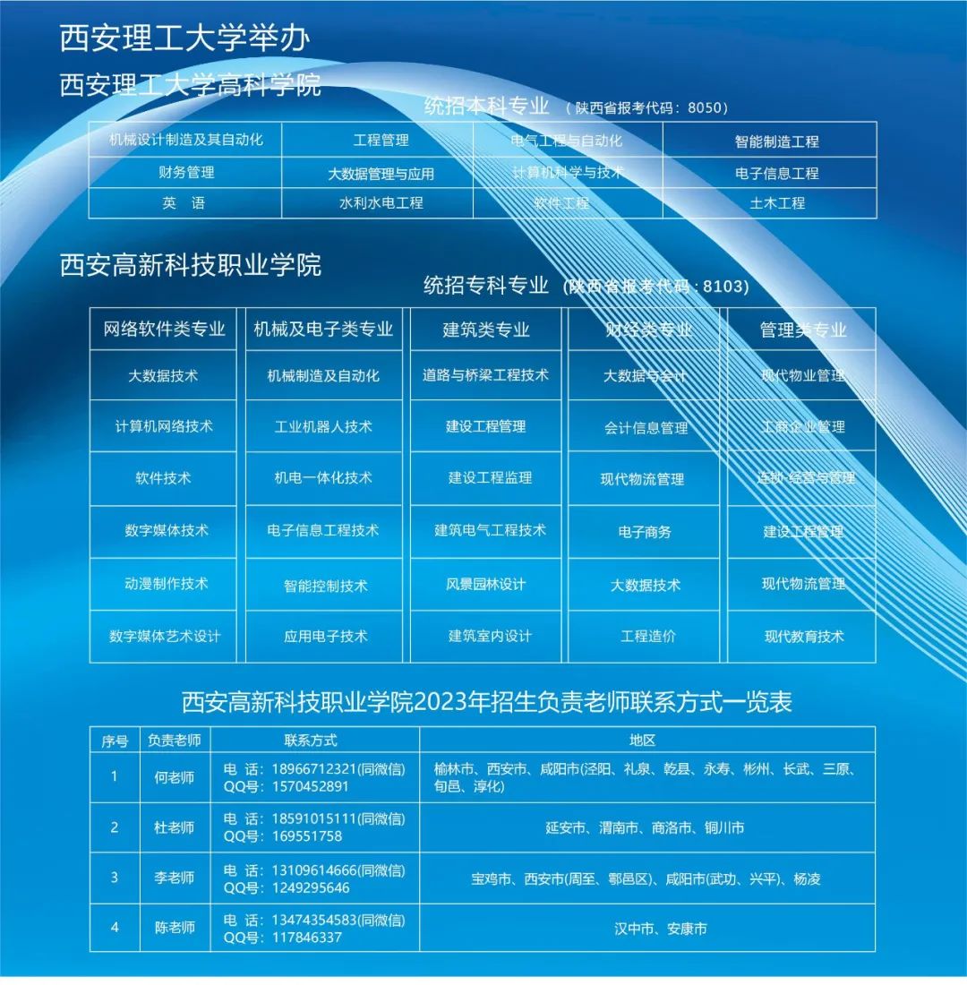 西安高新科技职业学院是经陕西省人民政府批准,国家教育部备案,由陕西省教育厅主管,纳入国家统一招生计划,并具有独立颁发国家承认学历证书资格的全日制普通高等院校。学院现位于国家级西咸新区,占地700余亩。建筑面积30万平方米;图书馆纸质藏书60余万册,期刊1500余种,数字图书50余万种,共同营造起一个极为理想的可容纳万余人的育人环境。现代化课堂,国内领先的高新科技一体化实验室集群,产学研一体的智慧化校园将引领学院向国际化大学标准迈进。