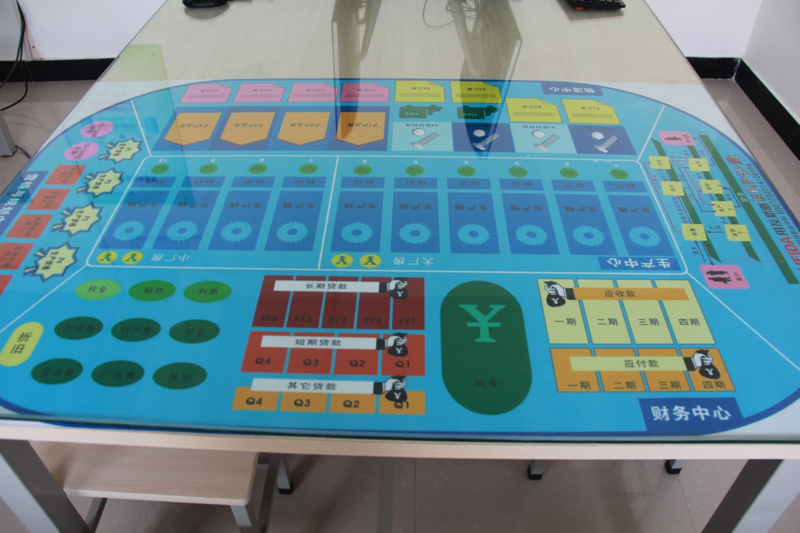 用友企业经营沙盘模拟课程是集知识性、趣味性、对抗性于一体的企业管理技能训练课程。受训学生被分成若干个团队,每个团队由若干个学生组成,每个学生将担任总经理、营销总监、生产总监、财务总监、采购总监、信息总监等。每个团队经营一个拥有销售良好、资金充裕的虚拟公司,连续从事6个会计年度的经营活动。通过直观的企业沙盘,模拟企业实际运行状况,内容涉及企业整体战略、产品研发、生产、市场、销售、财务管理、团队协作等多个方面,让学生在游戏般的训练中体验完整的企业经营过程,感受企业发展的典型历程,感悟正确的经营思路和管理理念。在短短两天的训练中,学生将遇到企业经营中常出现的各种典型问题,他们必须一同发现机遇,分析问题,制定决策,保证公司成功及不断的成长。