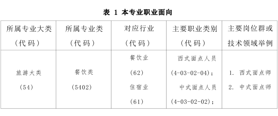 培养理想信念坚定,德、智、体、美、劳全面发展,适应餐饮市场发展对人 才的需要,具有良好职业道德和敬业精神,熟练掌握中西面点原料学、营养学、 卫生学、中点西点基本理论知识,掌握中式面点工艺、西式面点工艺等知识和技 术技能,面向中外旅游饭店、烘焙企业等旅游企业或者其他服务行业领域的复合型技术技能人才。职业面向持续本科专业举例:烹饪与营养教育;食品科学与工程。