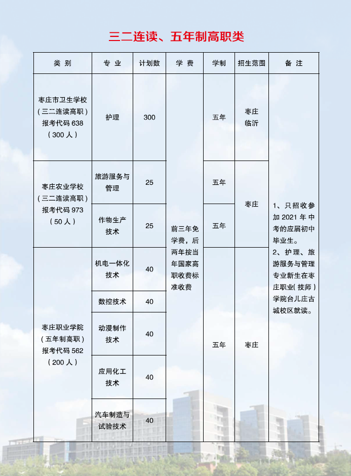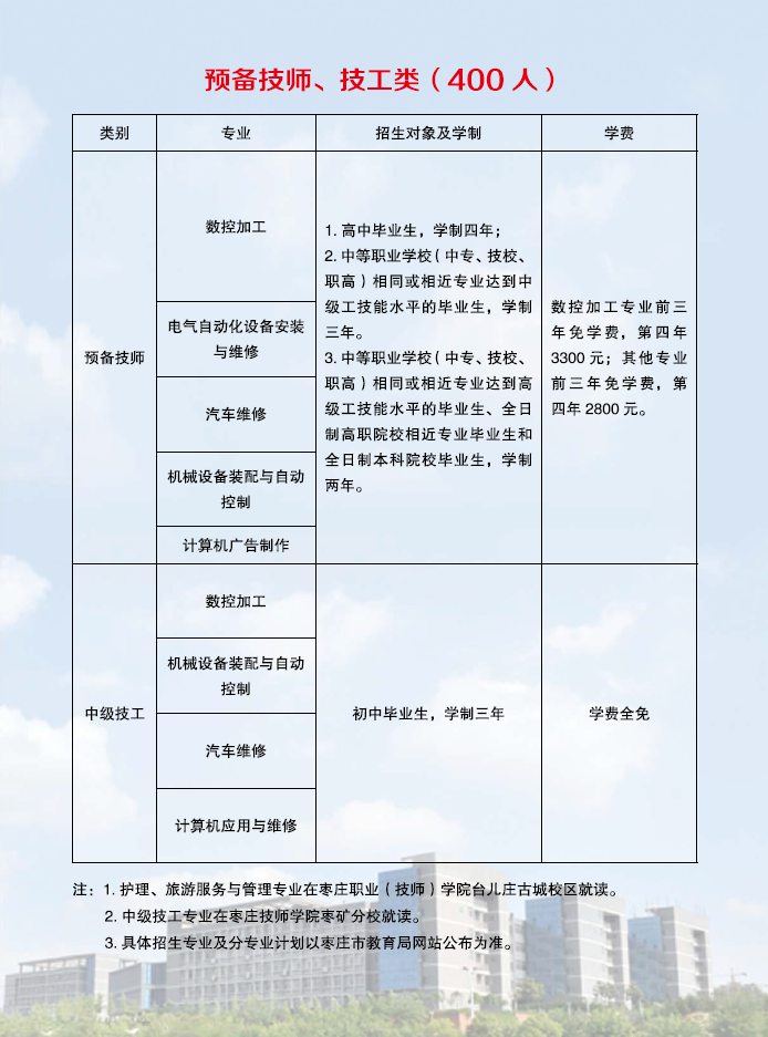 枣庄技师学院2021年招生简章