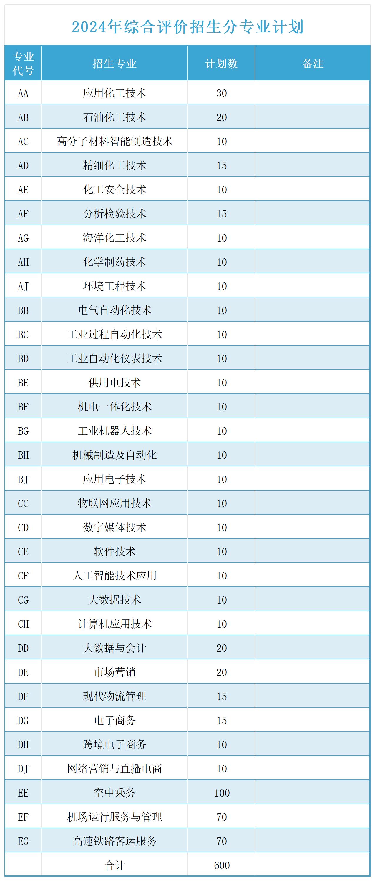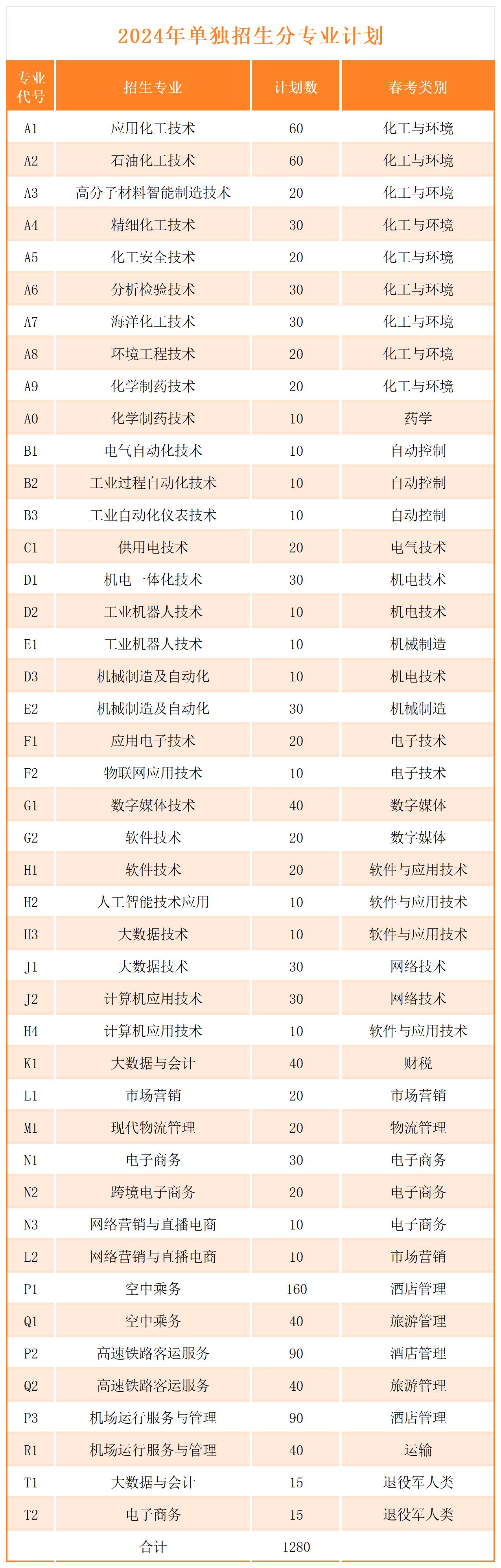 2024年高职(专科)单独招生和综合评价招生专业计划